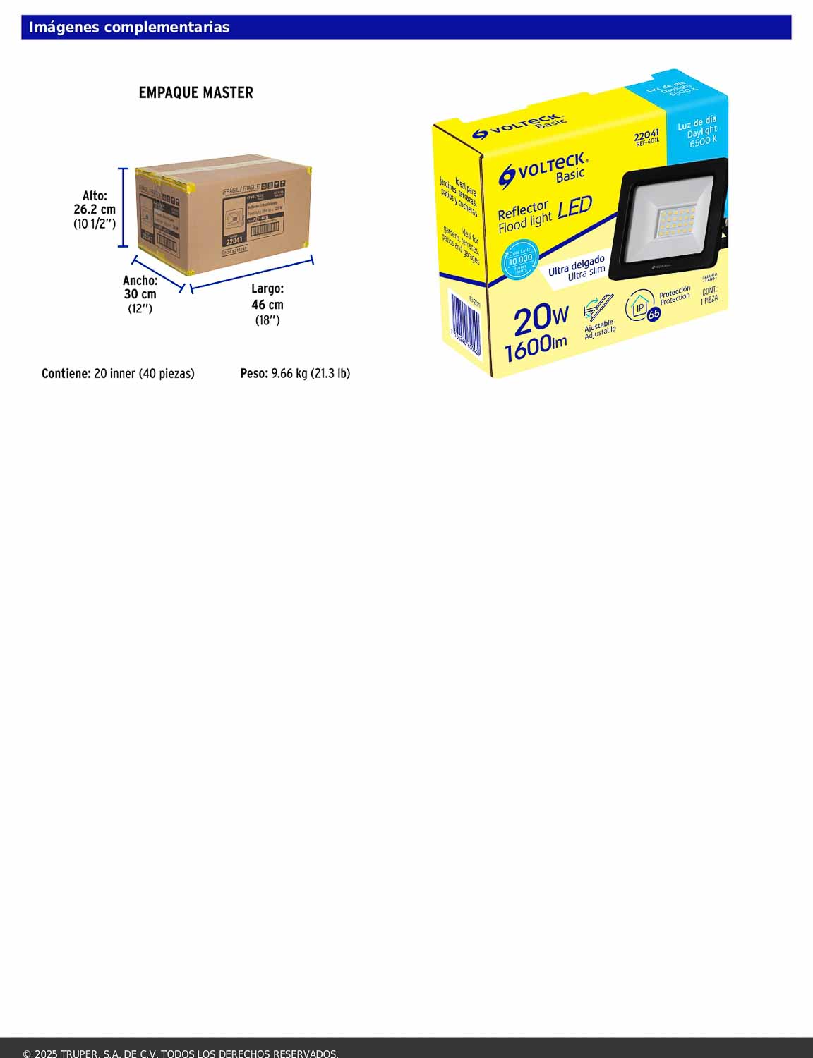 Reflector LED para exteriores de 20 W, fabricado con cuerpo de aluminio y pantalla de vidrio templado resistente a la intemperie. Ofrece encendido instantáneo al 100% de brillo, LED integrado, soporte ajustable y un ahorro energético de hasta 85%. Es ideal para jardines, terrazas, patios, corredores, áreas públicas y zonas de construcción. Cumple con la norma NOM-003-SCFI.
