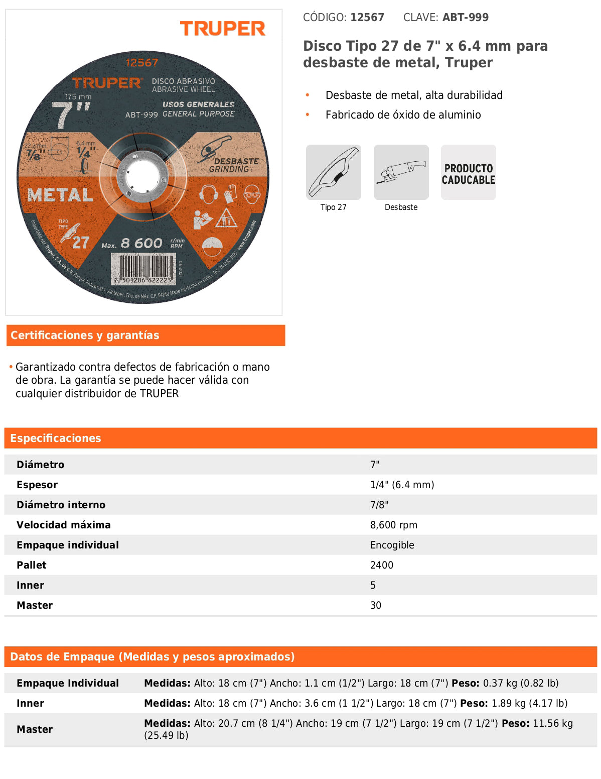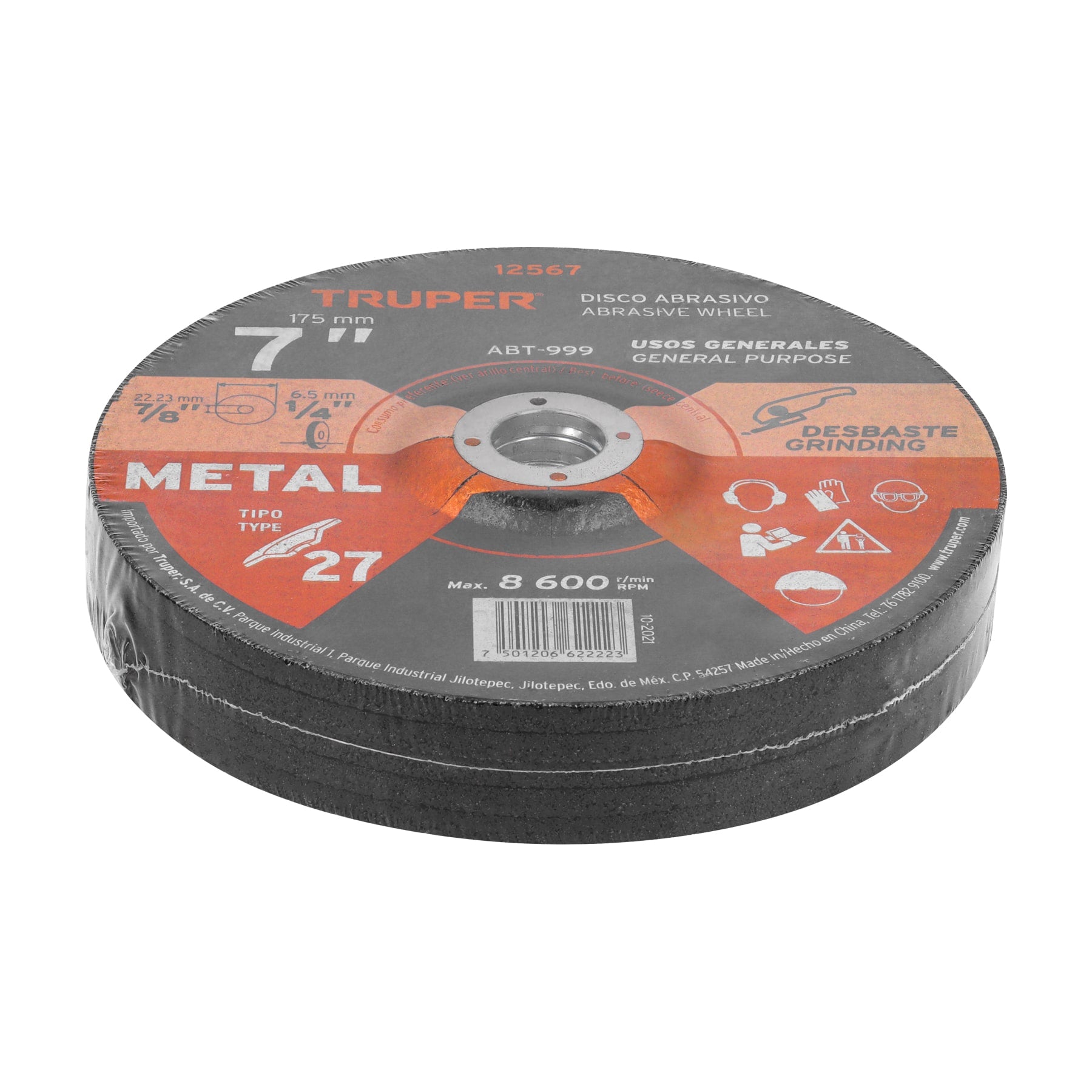Disco abrasivo tipo 27 diseñado para trabajos de desbaste en metal, fabricado con óxido de aluminio que ofrece alta durabilidad y un desempeño confiable en aplicaciones de uso profesional. Su diseño permite un trabajo estable y seguro en esmeriles angulares, manteniendo un rendimiento constante en tareas exigentes de mantenimiento y fabricación metálica.