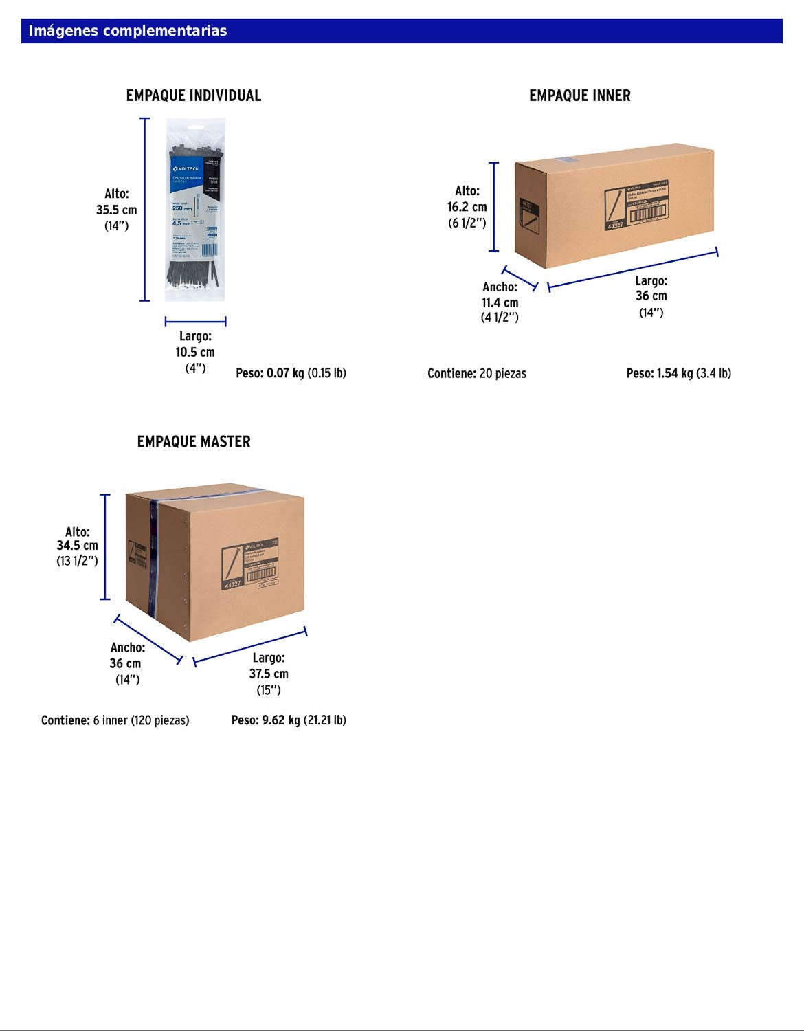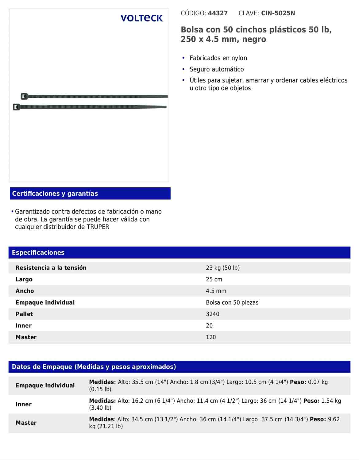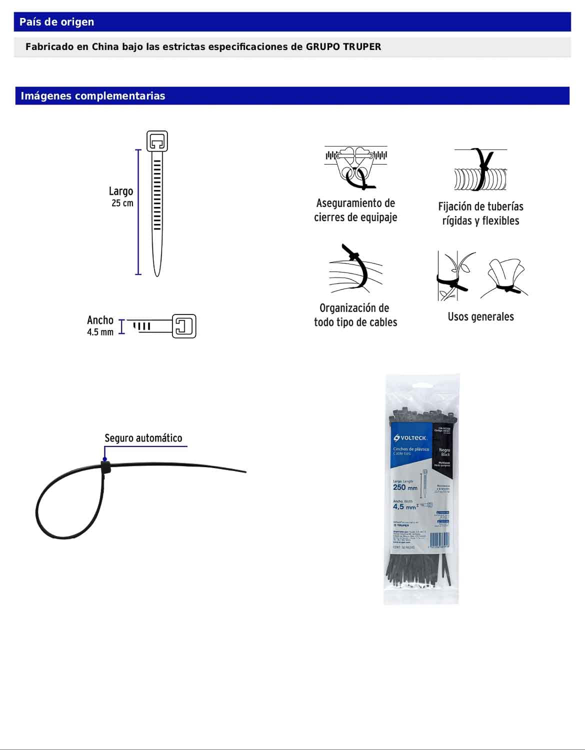 Bolsa con 50 cinchos plásticos 50 lb 250 x 4.5 mm negro