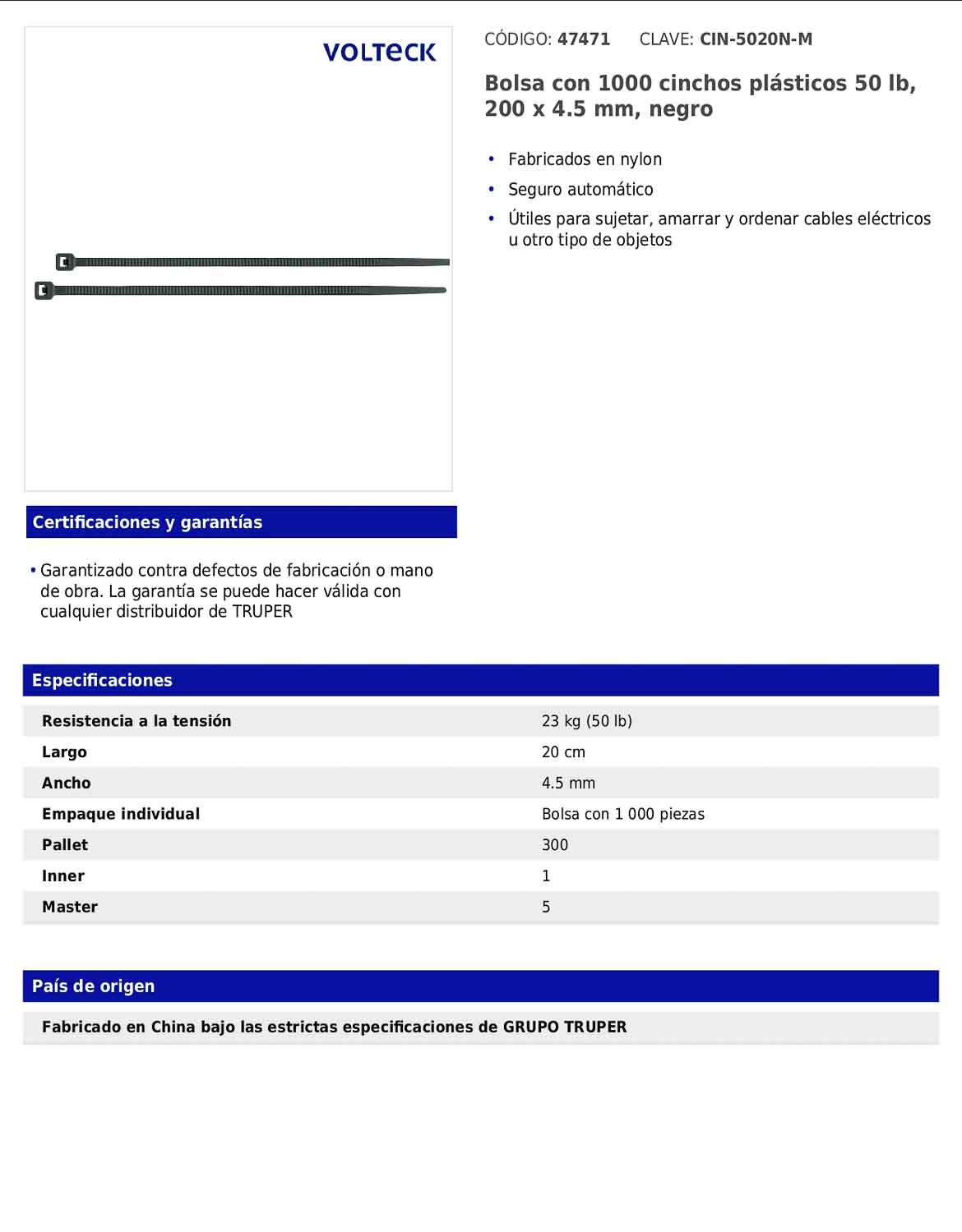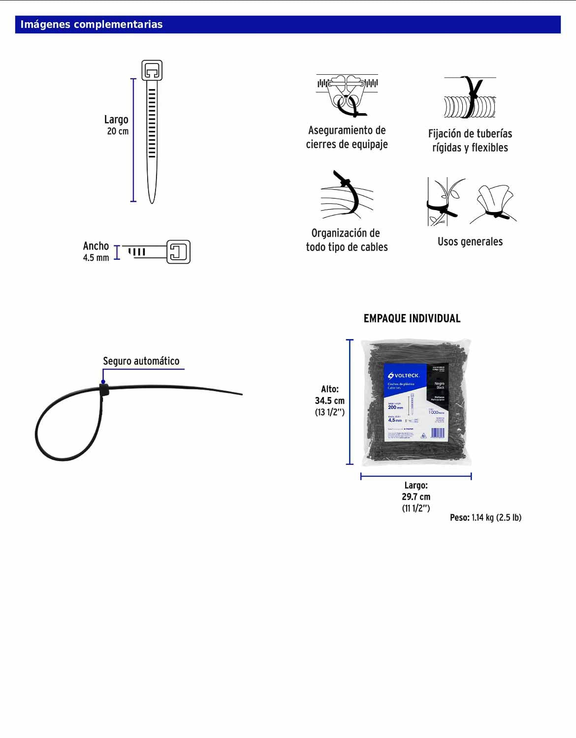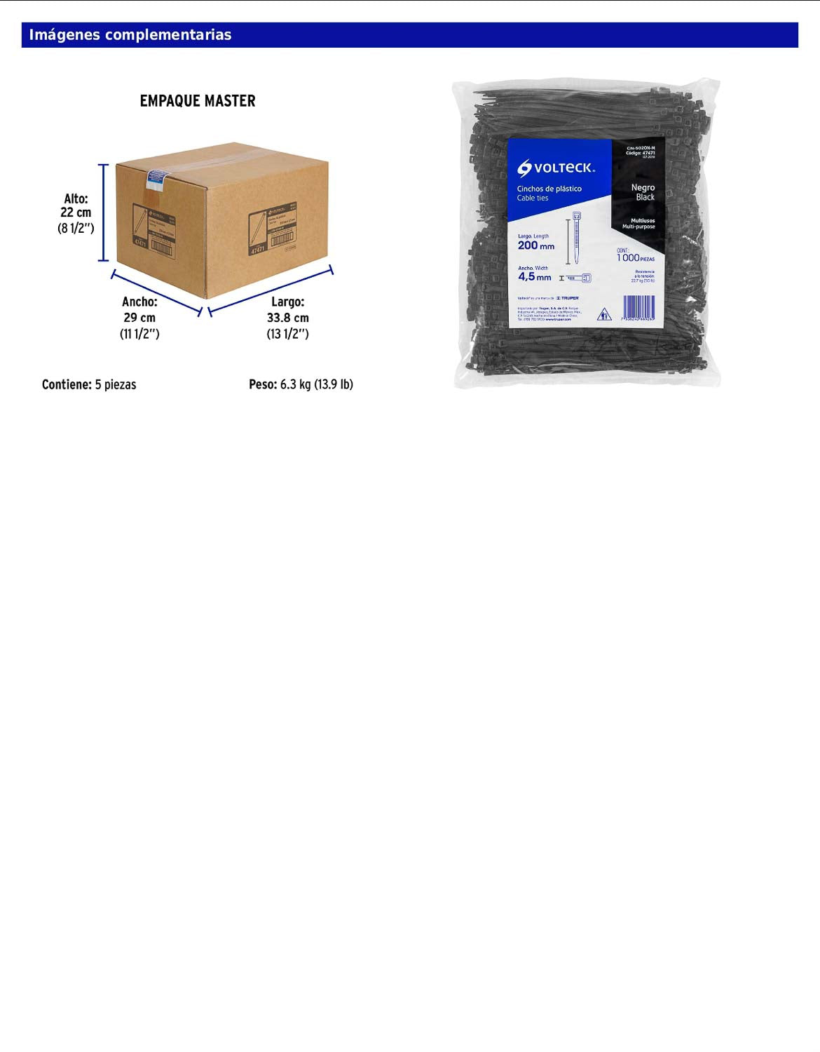 Bolsa con 1000 cinchos plásticos 50 lb 200 x 4.5 mm negro
