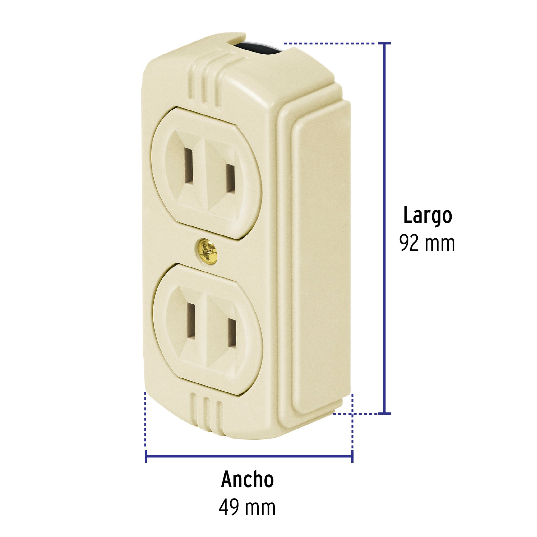Este contacto de sobreponer dúplex está diseñado para instalaciones eléctricas interiores donde se requiere una solución práctica sin empotrar. Su formato permite una instalación sencilla sobre superficies visibles, ideal para aplicaciones residenciales ligeras.