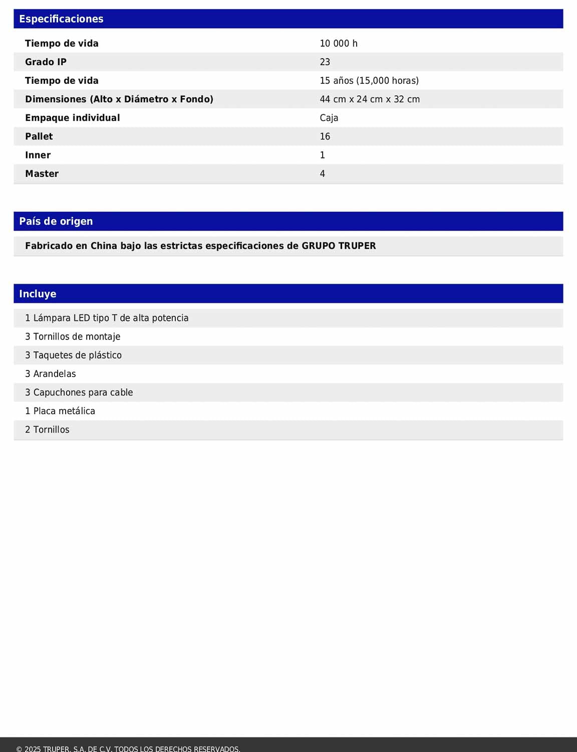 - País de origen: fabricado en China bajo especificaciones de Grupo Truper.