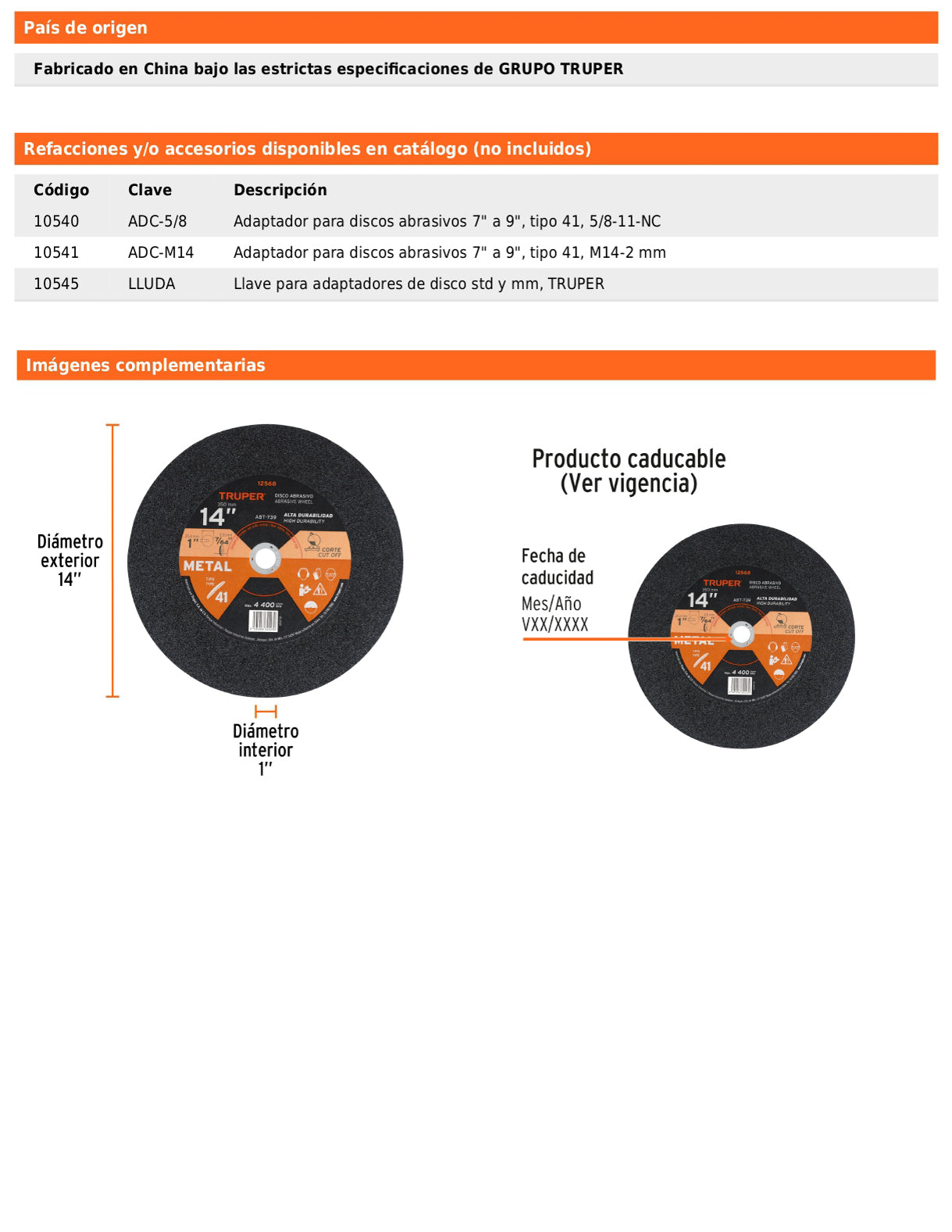 Disco tipo 41 de 14" para corte de metal con espesor 3.1 mm