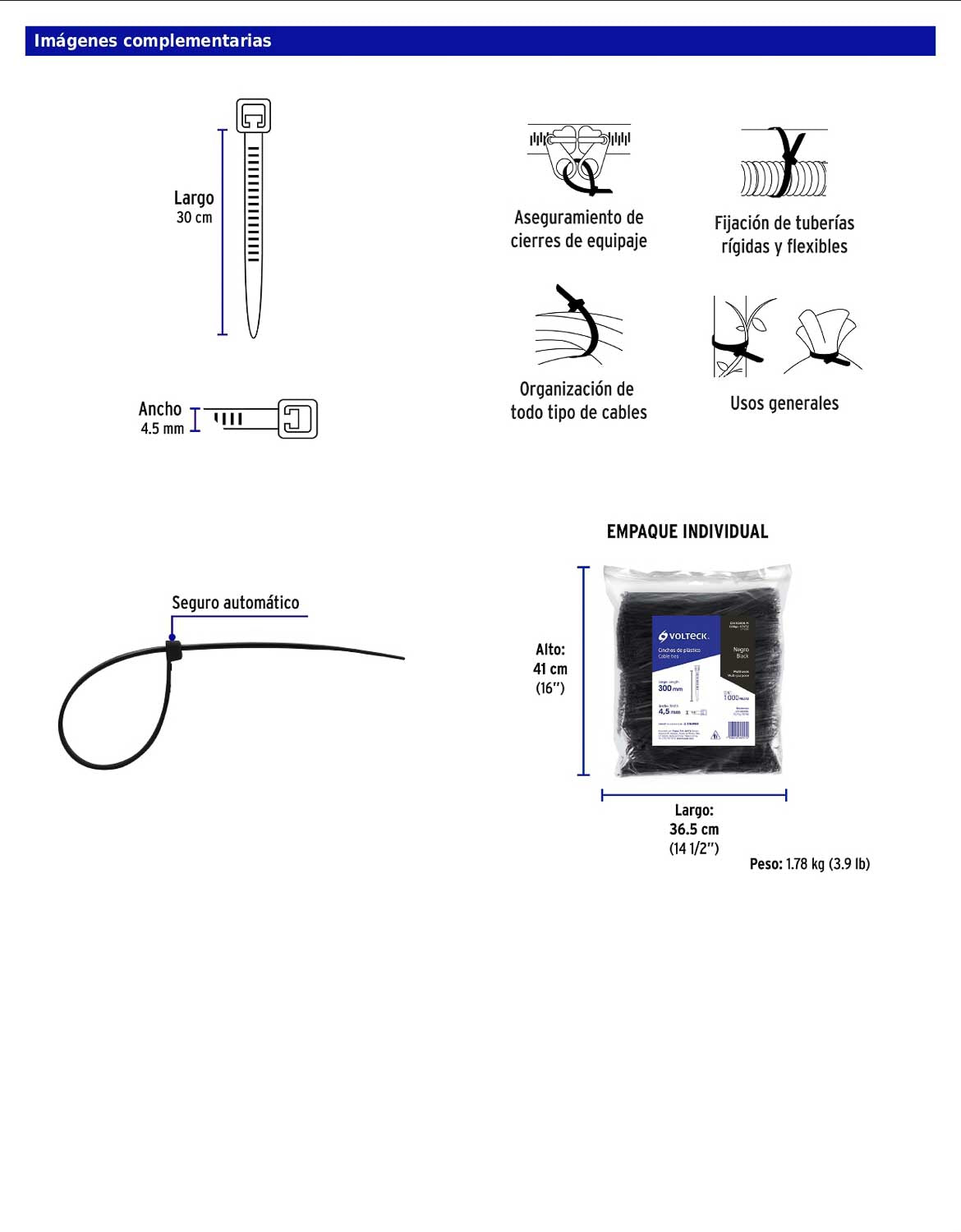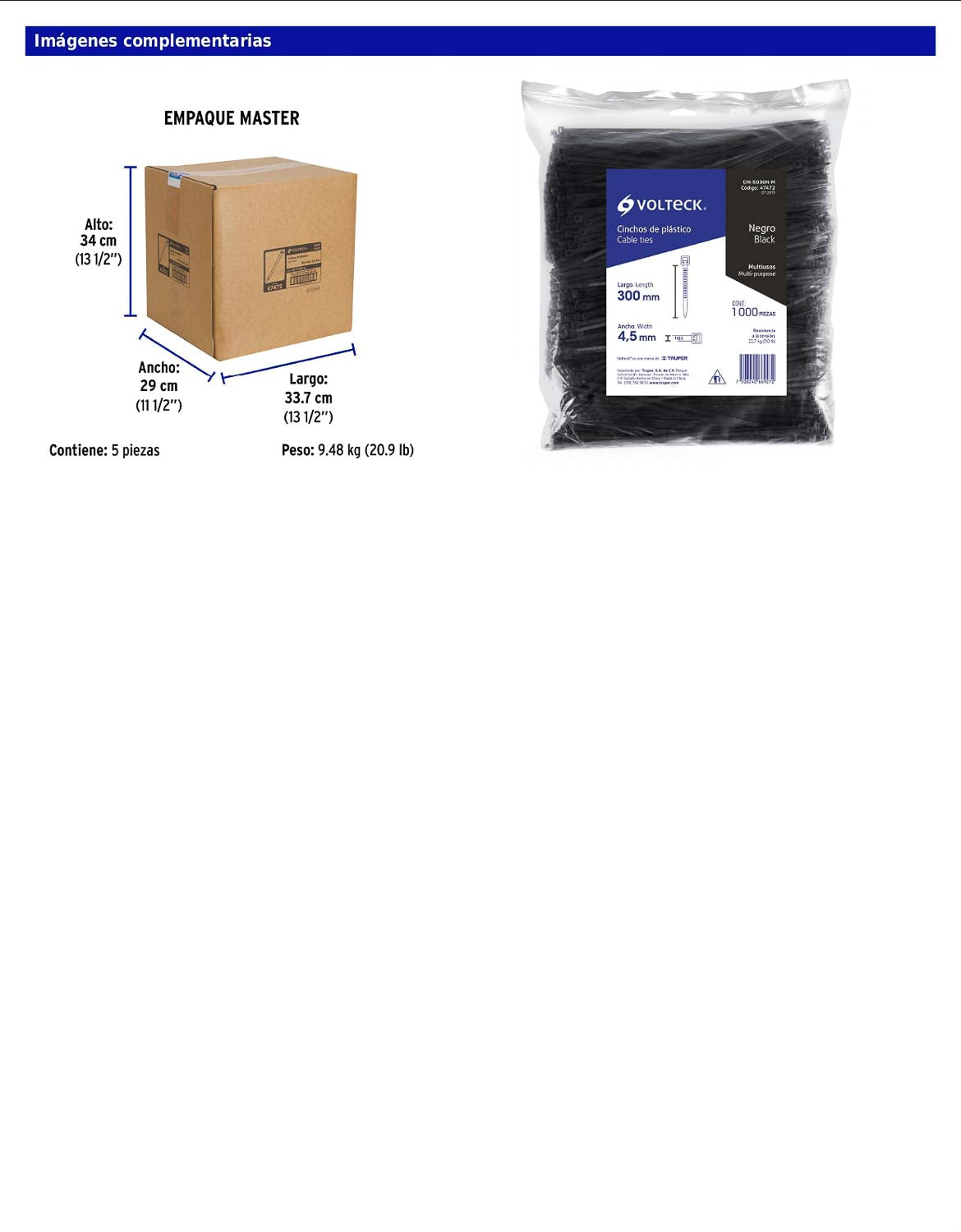 Bolsa con 1000 cinchos plásticos 50 lb 300 x 4.5 mm negro