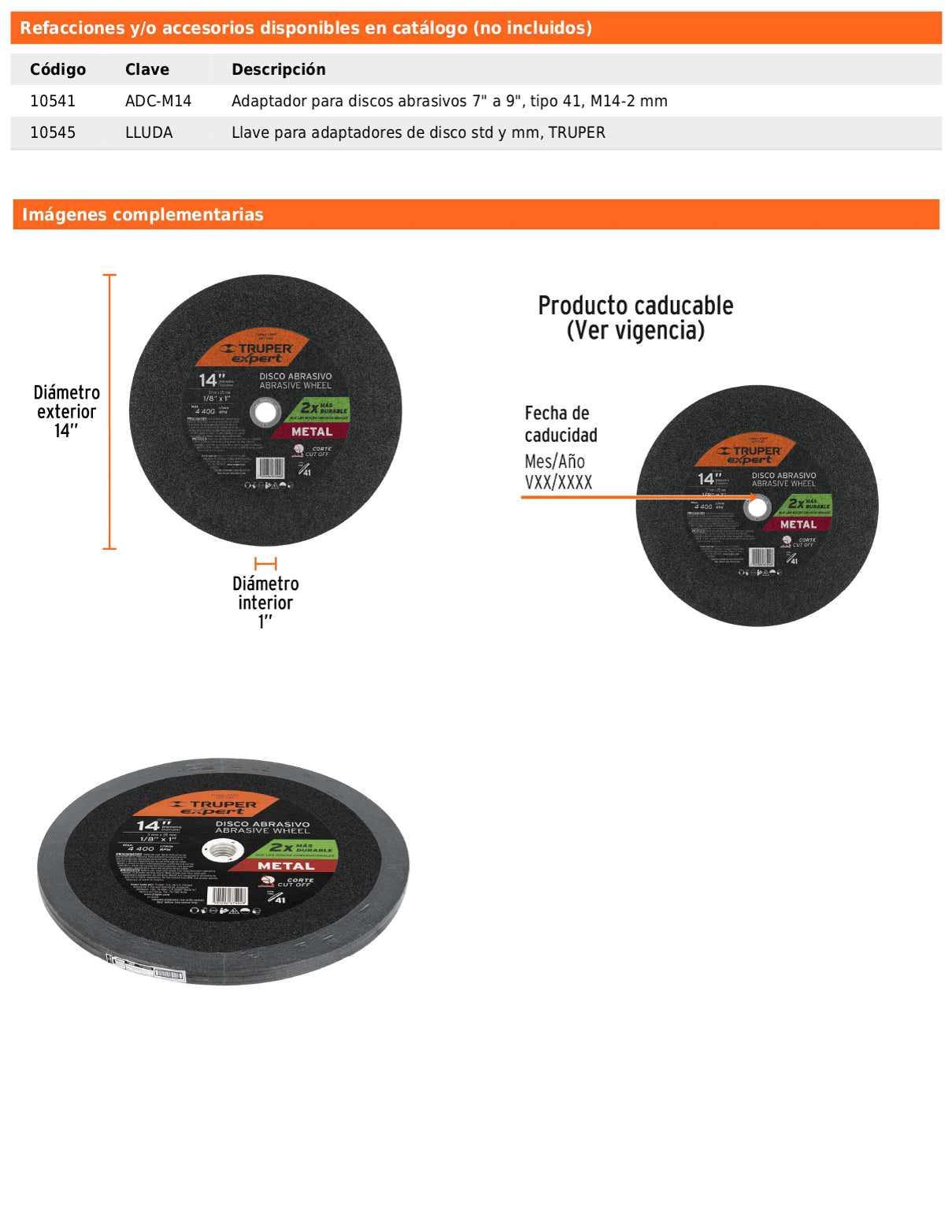 - Diámetro exterior: 14" (350 mm).