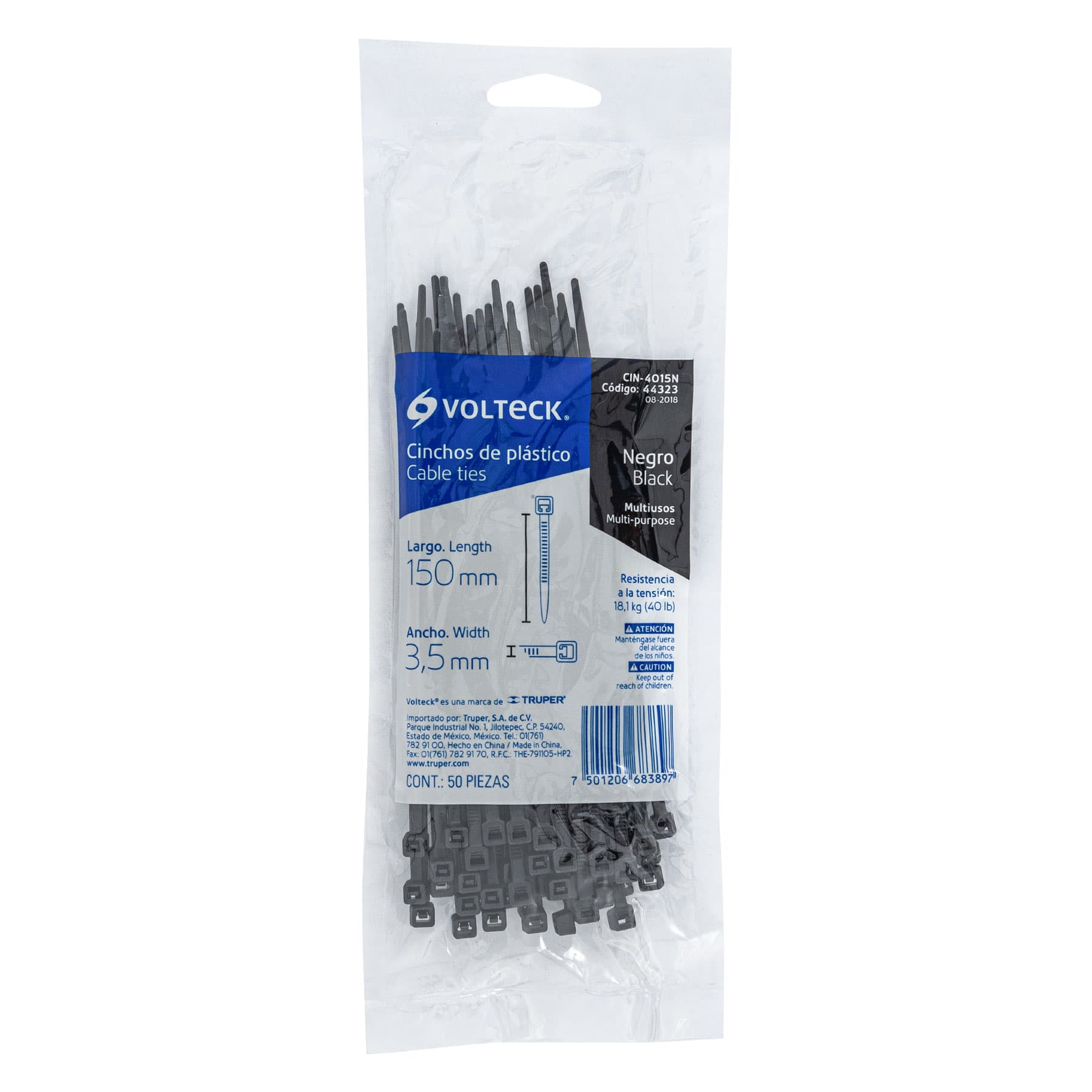 Bolsa con 50 cinchos plásticos 40 lb 150 x 3.5 mm natural