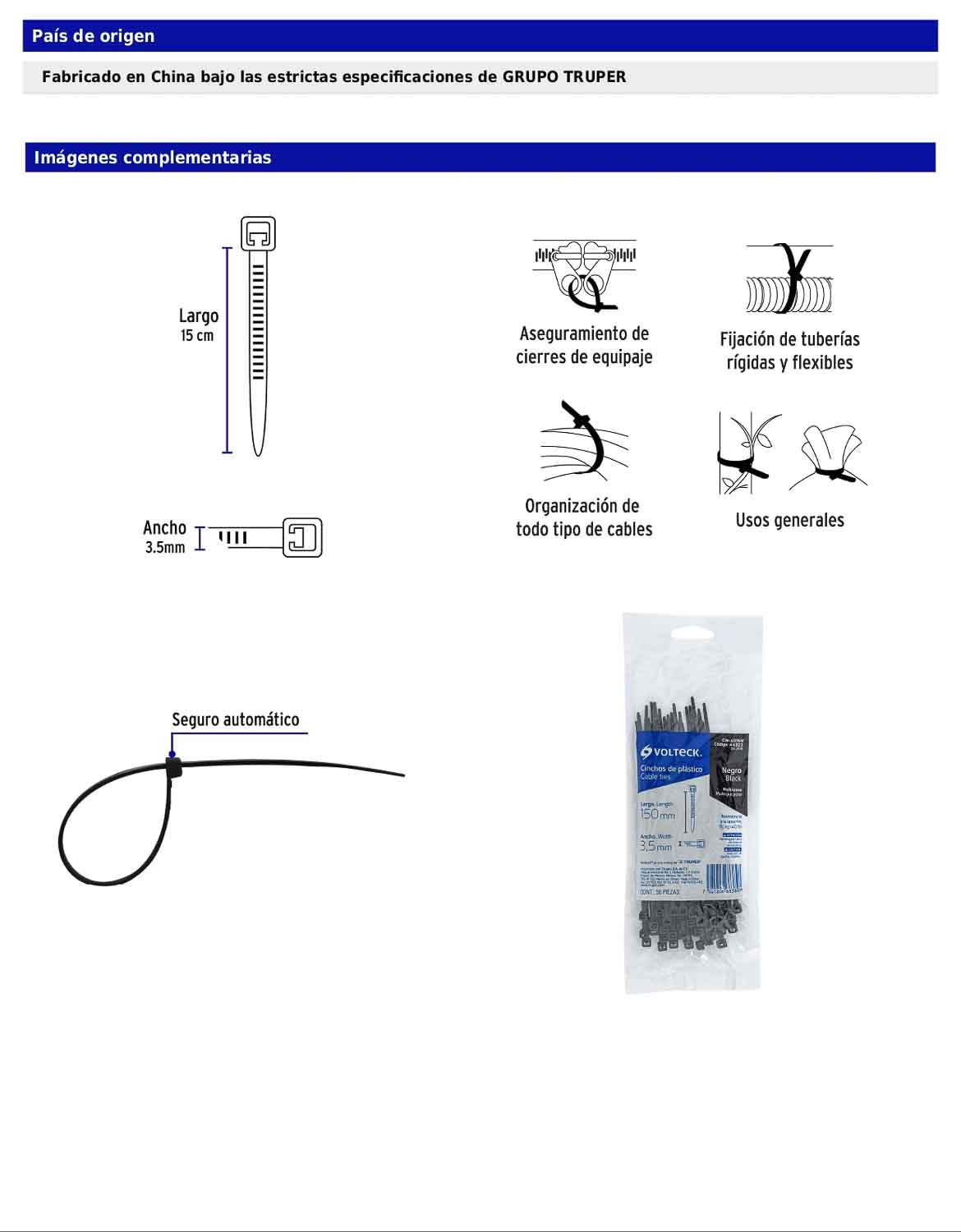 Cinchos plásticos fabricados en nylon con seguro automático, útiles para sujetar, amarrar y ordenar cables eléctricos u otro tipo de objetos.