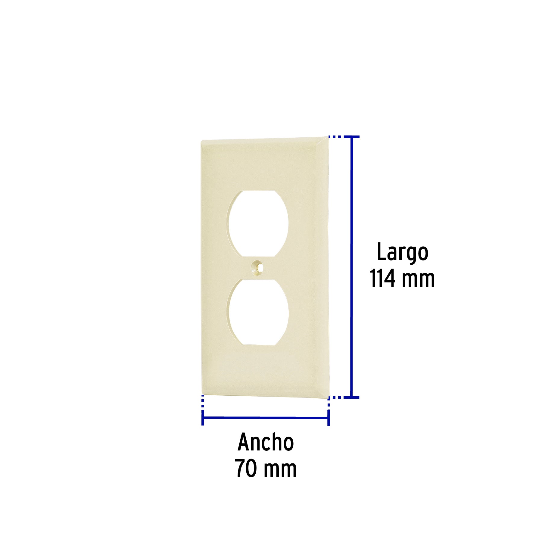 Esta placa dúplex está diseñada para instalaciones eléctricas interiores, permitiendo la colocación de dos módulos para contactos y/o interruptores en un solo conjunto. Su diseño estándar facilita la integración en proyectos residenciales o comerciales ligeros.