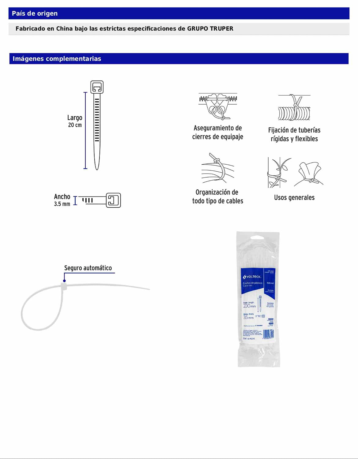 Cinchos plásticos fabricados en nylon con seguro automático, útiles para sujetar, amarrar y ordenar cables eléctricos u otro tipo de objetos.