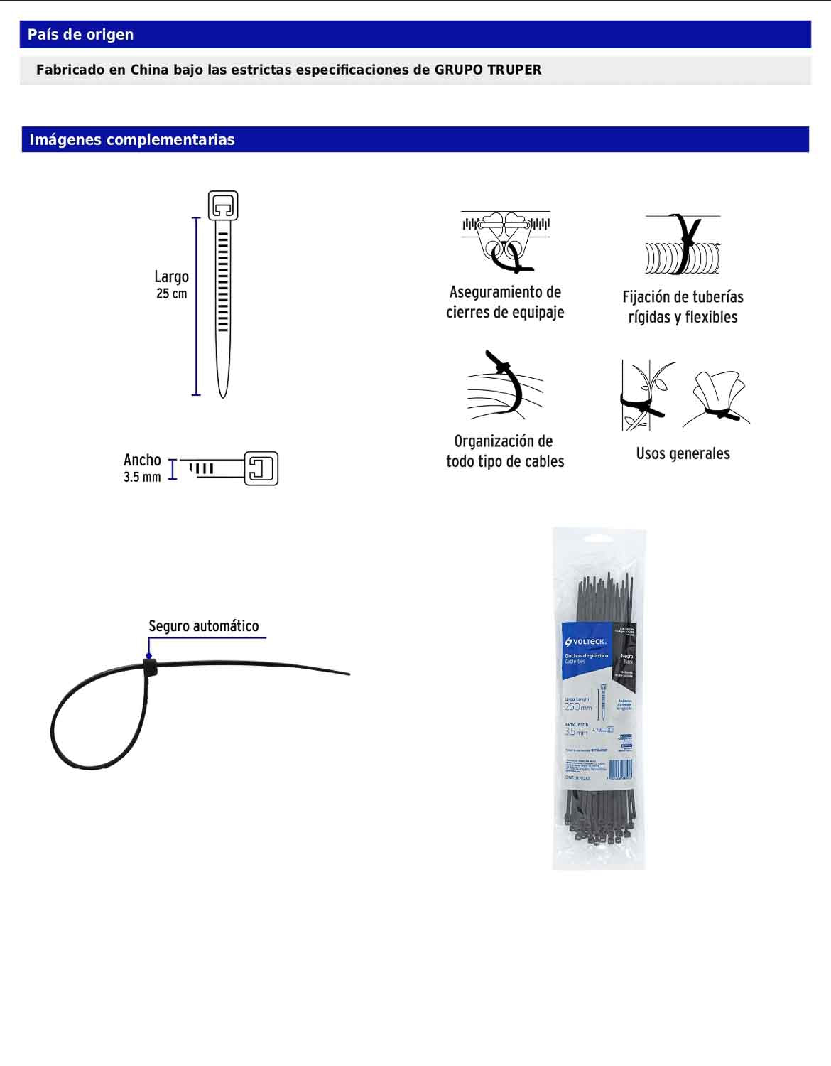 Cinchos plásticos fabricados en nylon con seguro automático, útiles para sujetar, amarrar y ordenar cables eléctricos u otro tipo de objetos.