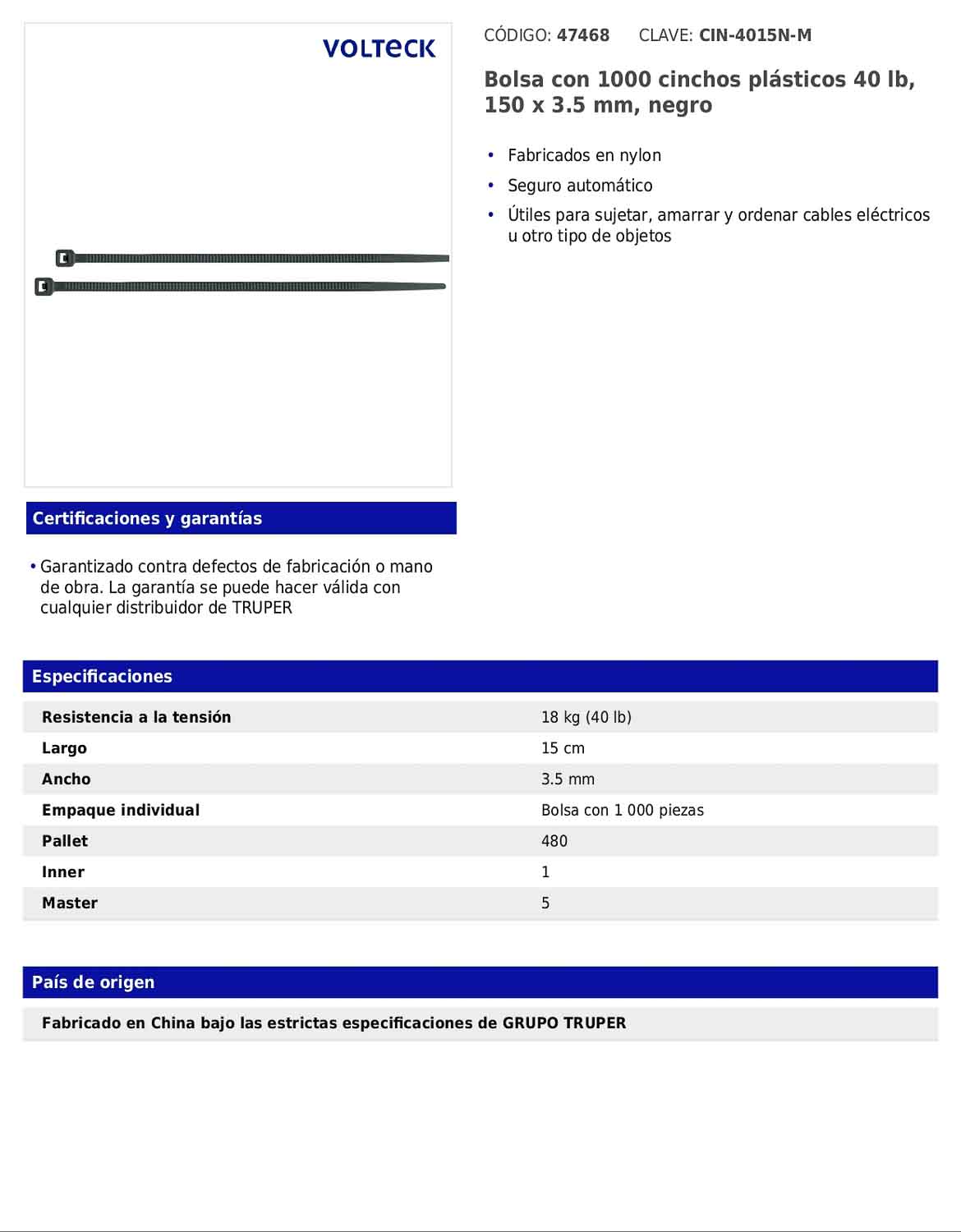 Bolsa con 1000 cinchos plásticos 40 lb 150 x 3.5 mm negro