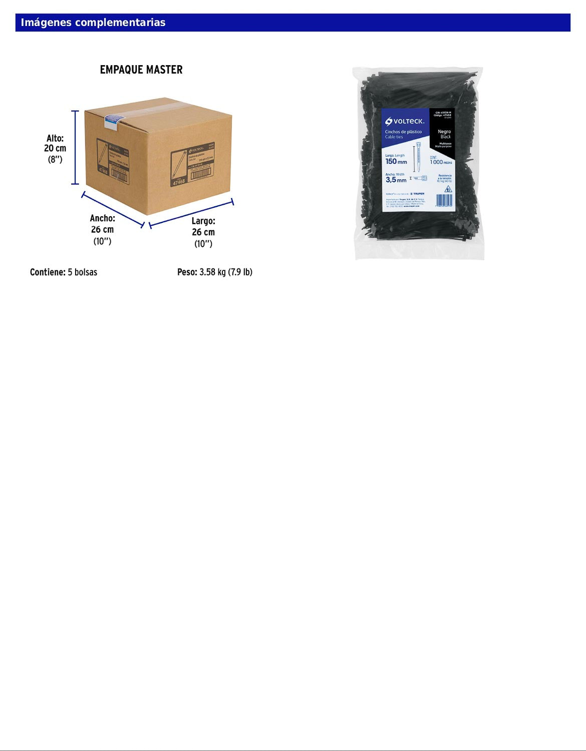 - Empaque individual: Bolsa con 1,000 piezas