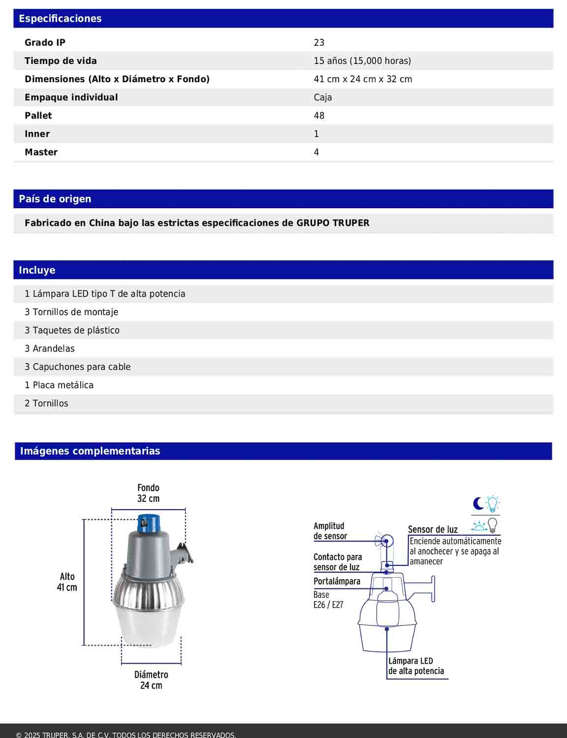 - País de origen: fabricado en China bajo las especificaciones de Grupo Truper.