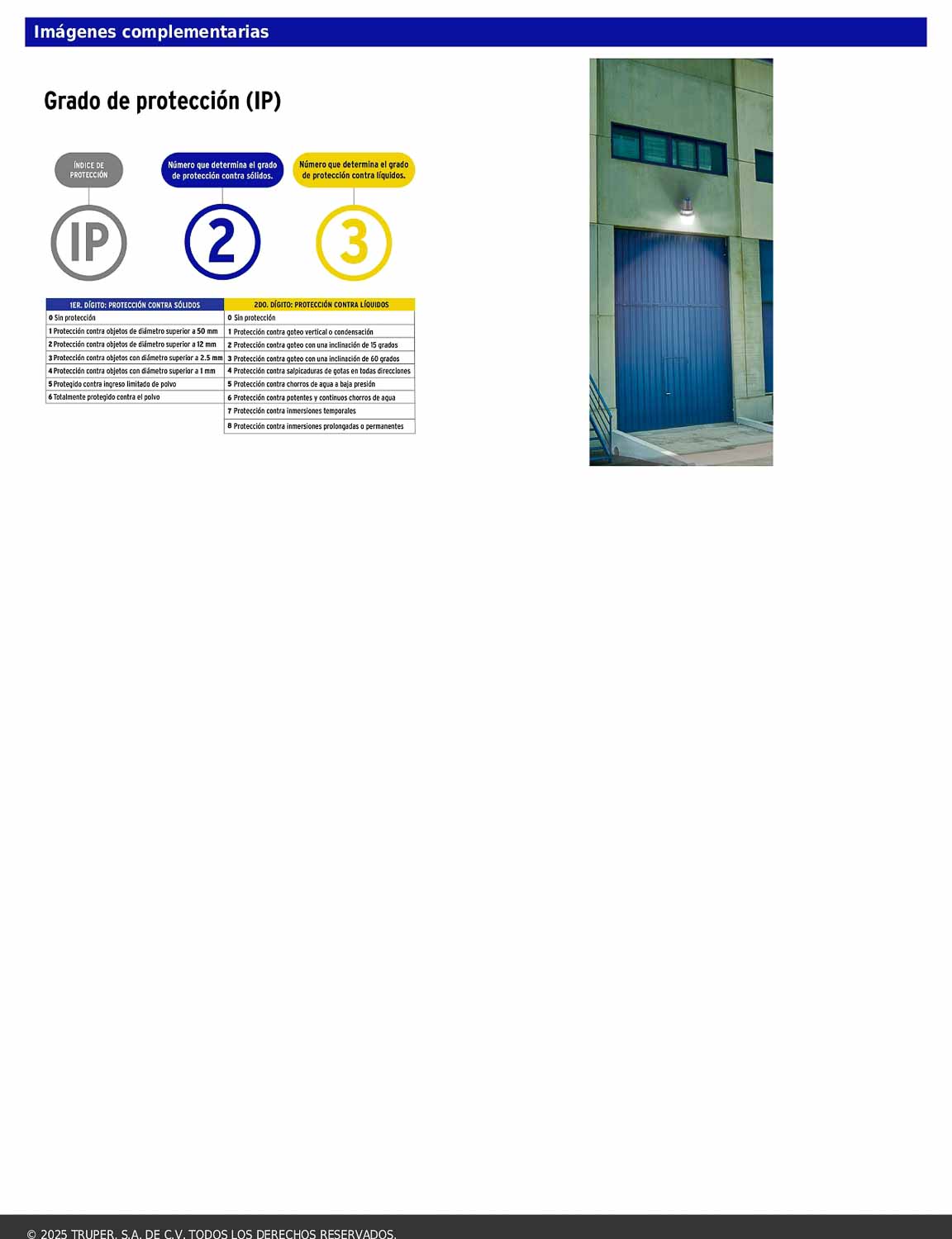 - Grado de protección: IP23.