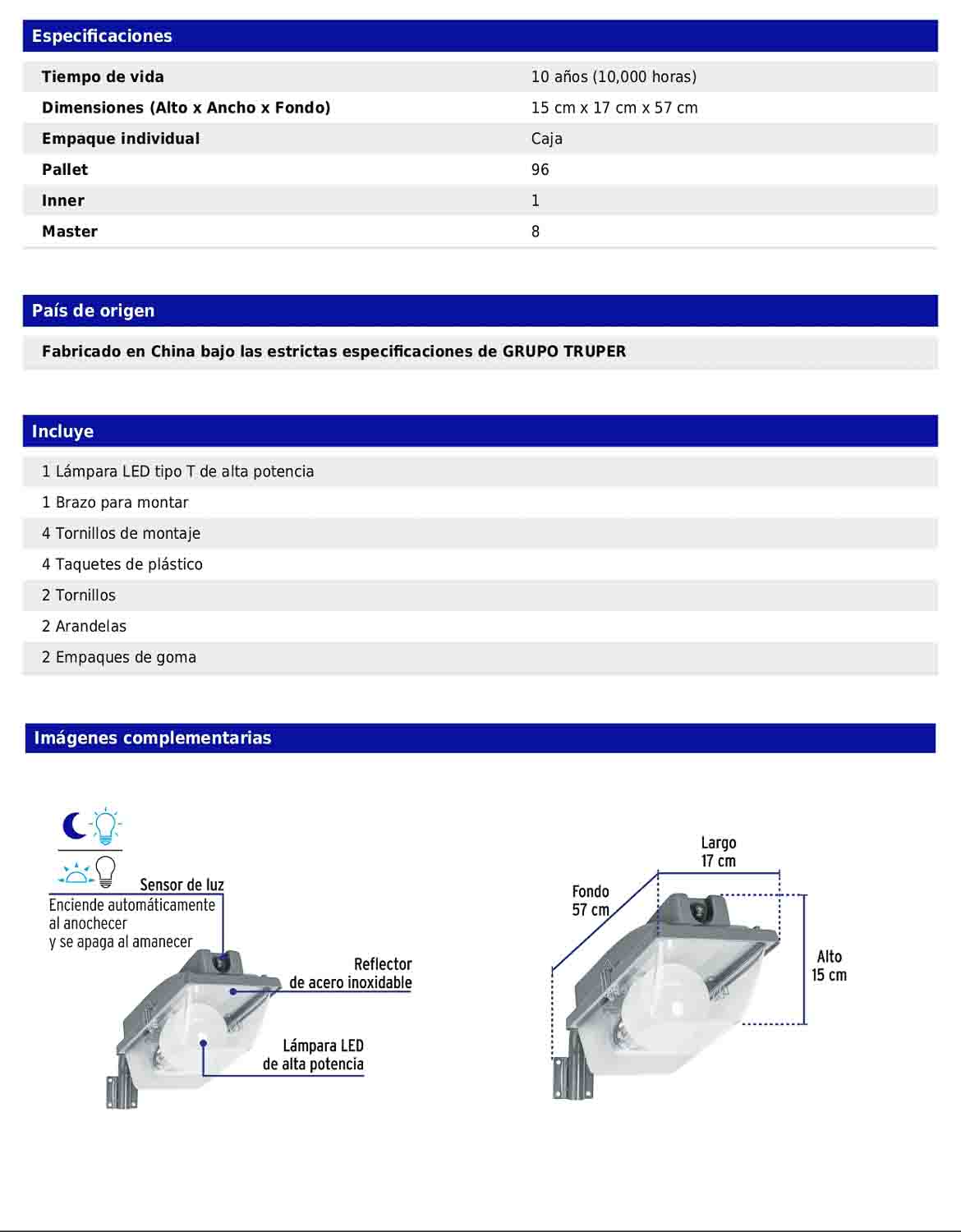 Luminario suburbano fabricado con cuerpo de ABS, reflector de acero inoxidable y pantalla de policarbonato resistente a la intemperie, diseñado para iluminación perimetral en áreas residenciales, comerciales y de estacionamiento. Incorpora sensor de luz que permite el encendido automático al anochecer y apagado al amanecer, lámpara LED de alta potencia incluida y compatibilidad con bases estándar E26/E27 para un funcionamiento eficiente y confiable.