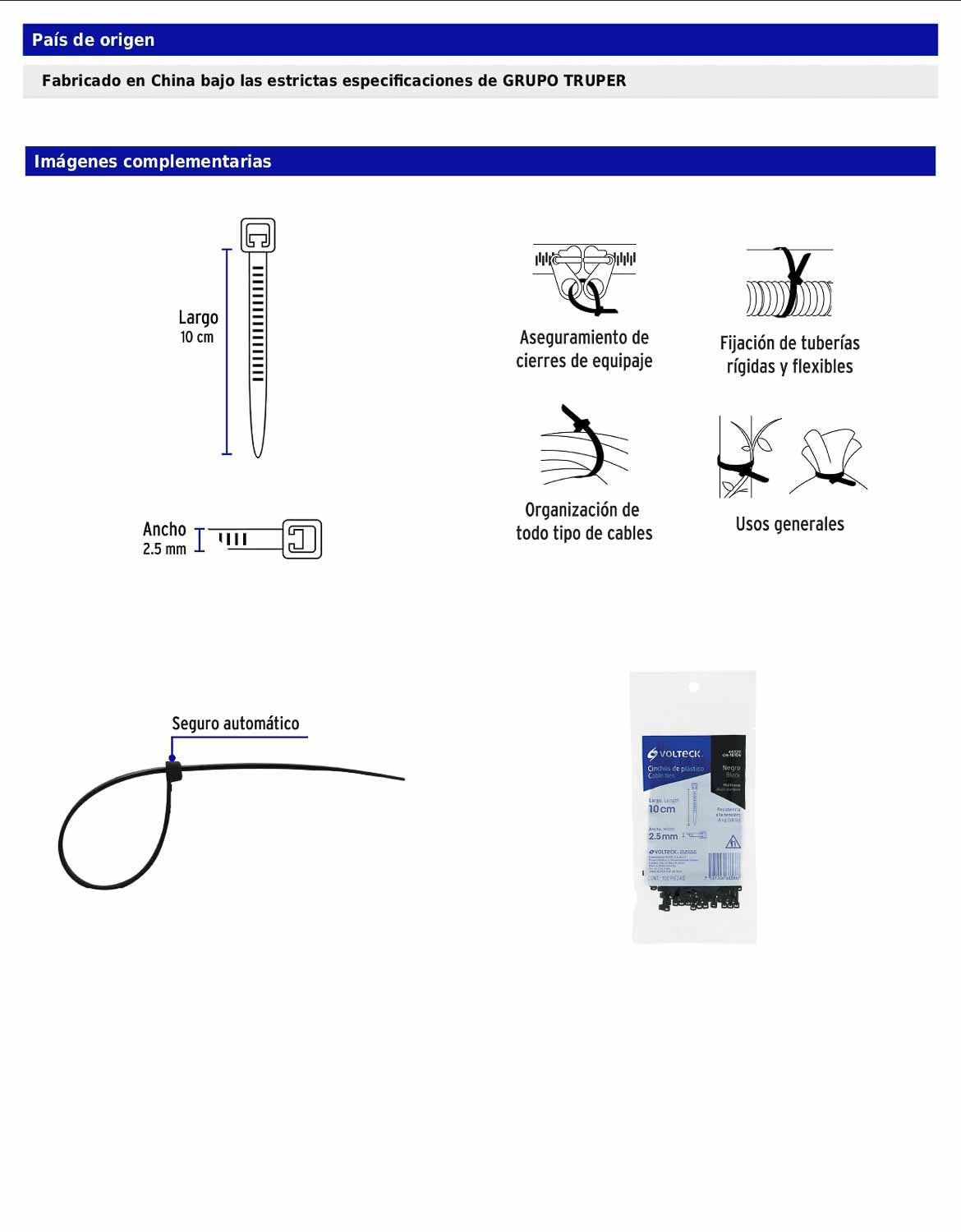 Bolsa con 100 cinchos plásticos 18 lb 100 x 2.5 mm negro