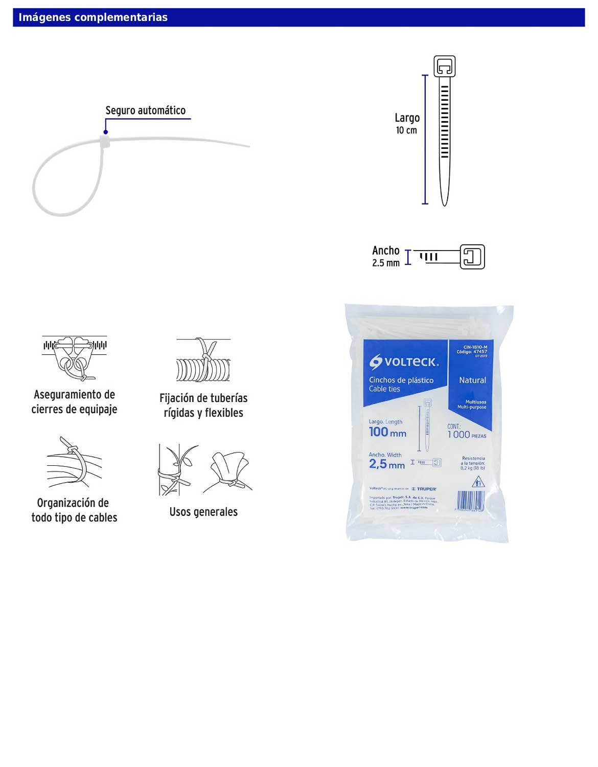 Bolsa con 1000 cinchos plásticos 18 lb de 100 x 2.5 mm natural
