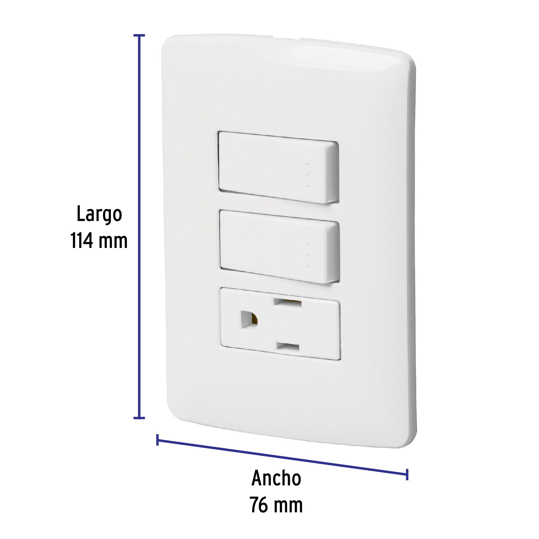 Placa armada con contacto y 2 interruptores de 127 V y 16 A con placa blanca