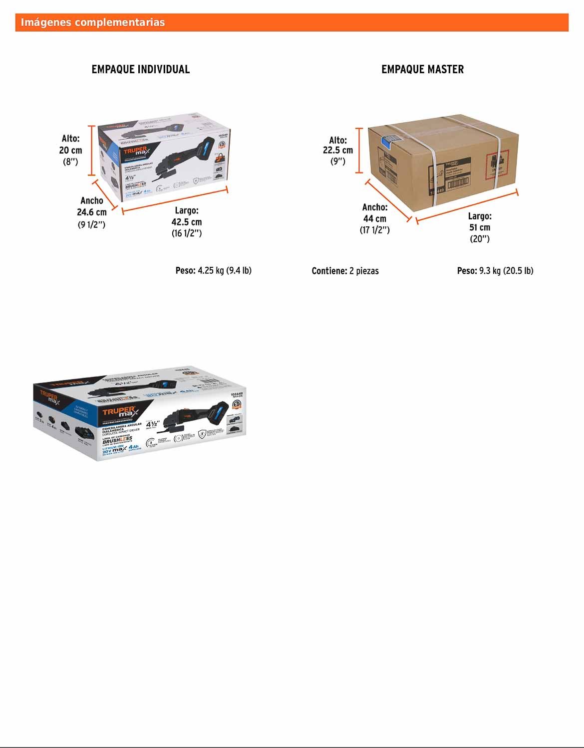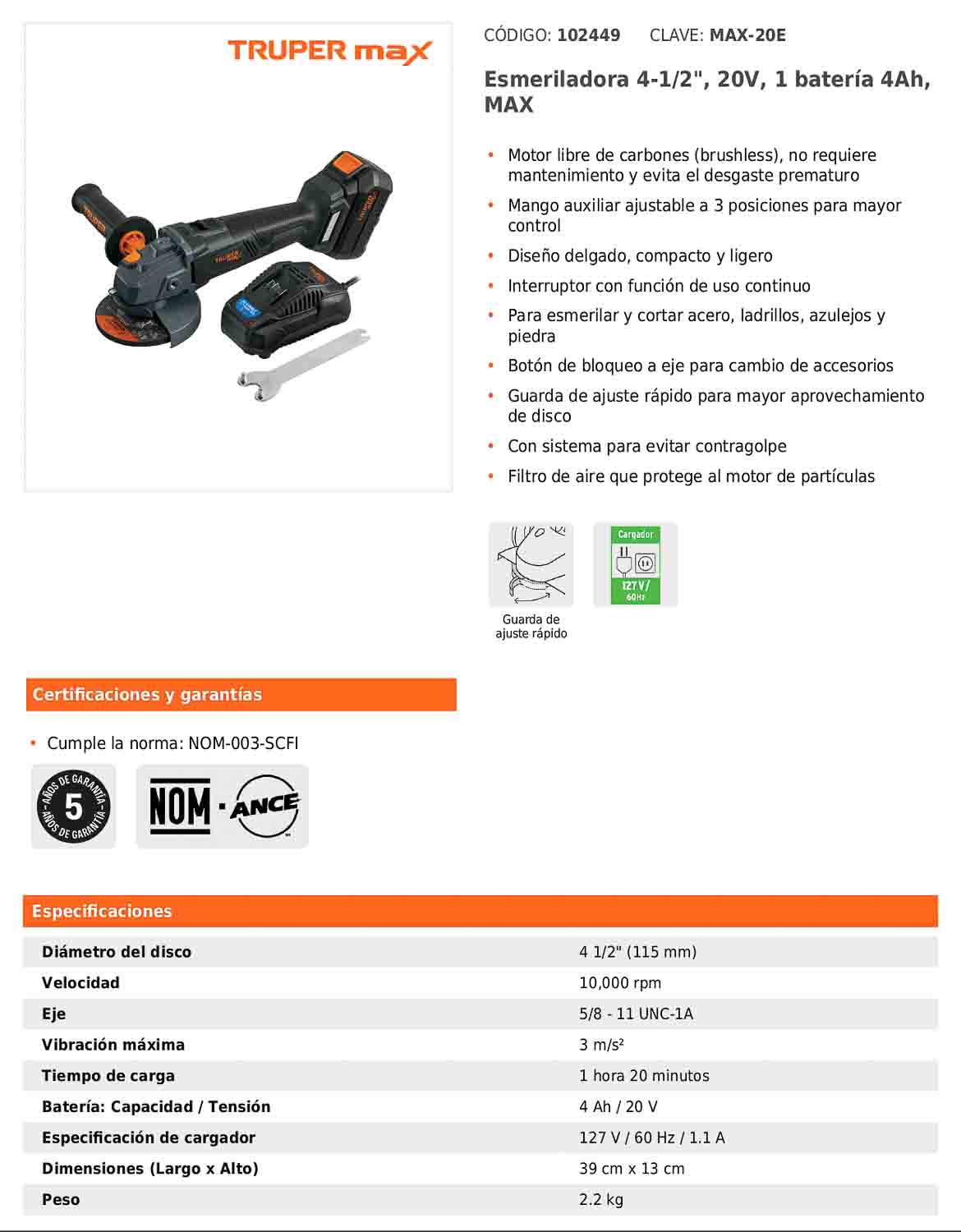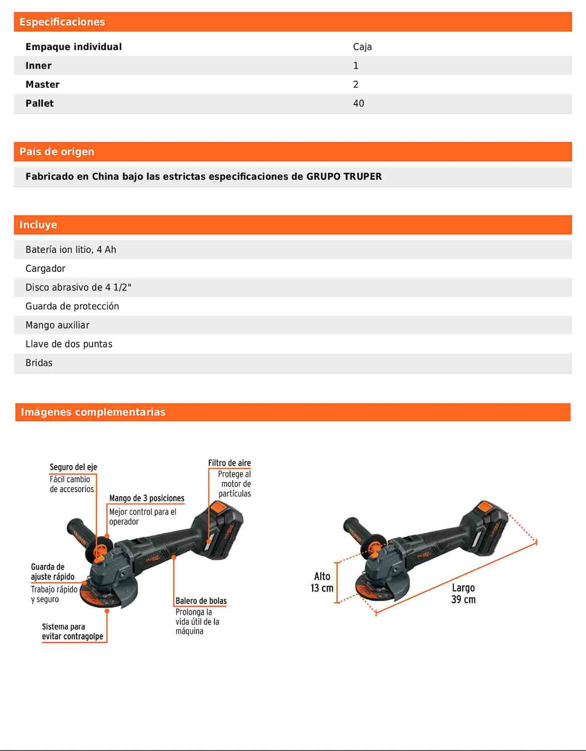 - Diámetro del disco de 4 1/2 in.