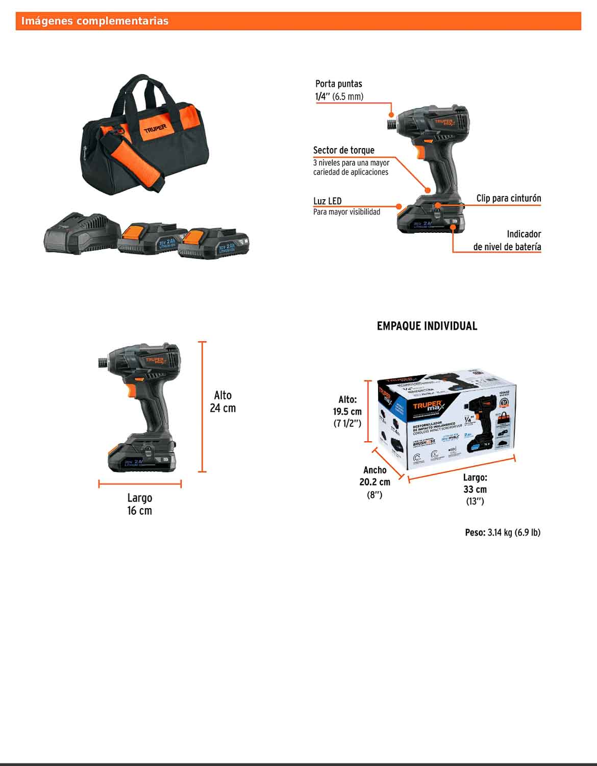 Destornillador de impacto inalámbrico con motor libre de carbones que ofrece alto desempeño y menor mantenimiento, ideal para trabajar en metal con pijas extralargas punta de broca. Cuenta con porta puntas de 1/4 in, sistema de batería compatible, selector electrónico de tres velocidades y torque para mayor variedad de aplicaciones, luz LED para iluminar el área de trabajo, indicador de nivel de carga en la batería y mango con grip antiderrapante para un manejo seguro y cómodo.