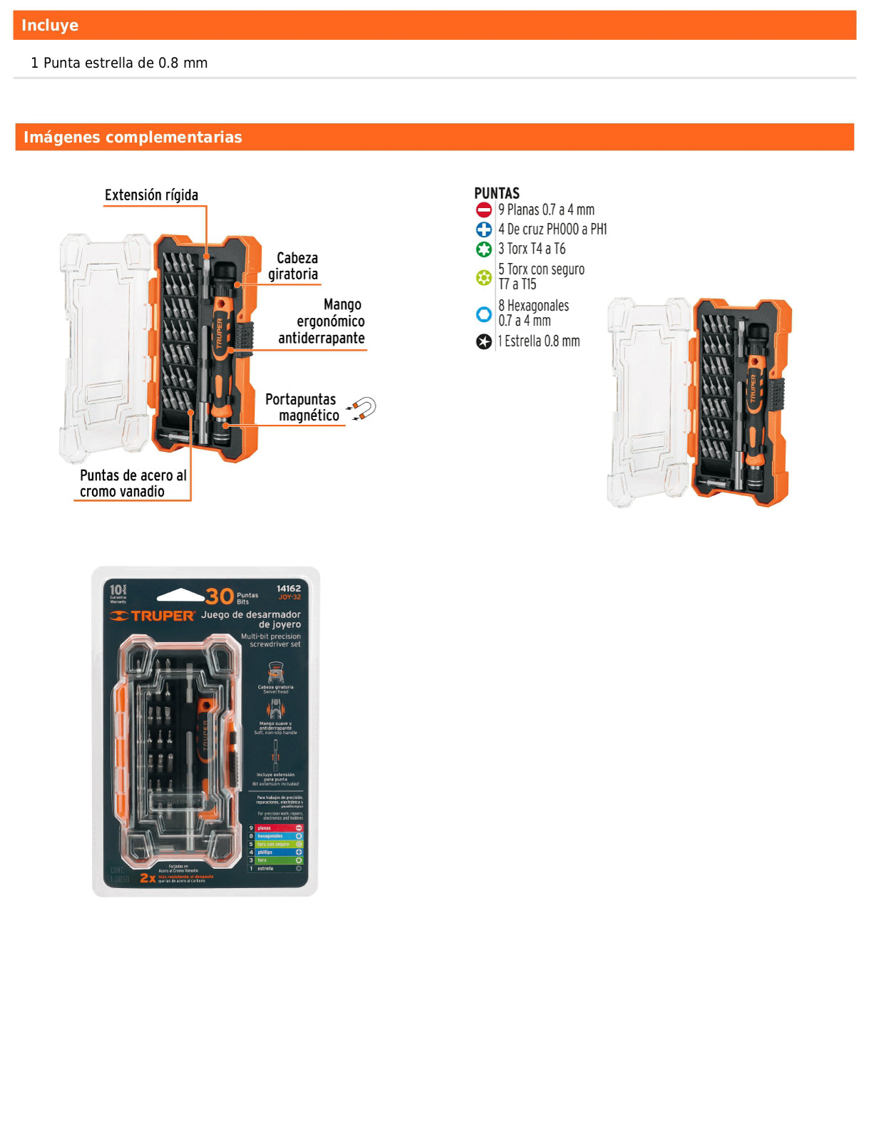Desarmador de precisión diseñado para trabajos de electrónica y tareas detalladas, equipado con puntas fabricadas en acero al cromo vanadio que ofrecen mayor resistencia al desgaste. Incorpora extensión rígida para mayor alcance, portapuntas magnético, mango de aluminio con cabeza giratoria que facilita el control durante el uso y un estuche organizador que permite mantener todas las puntas ordenadas y protegidas.