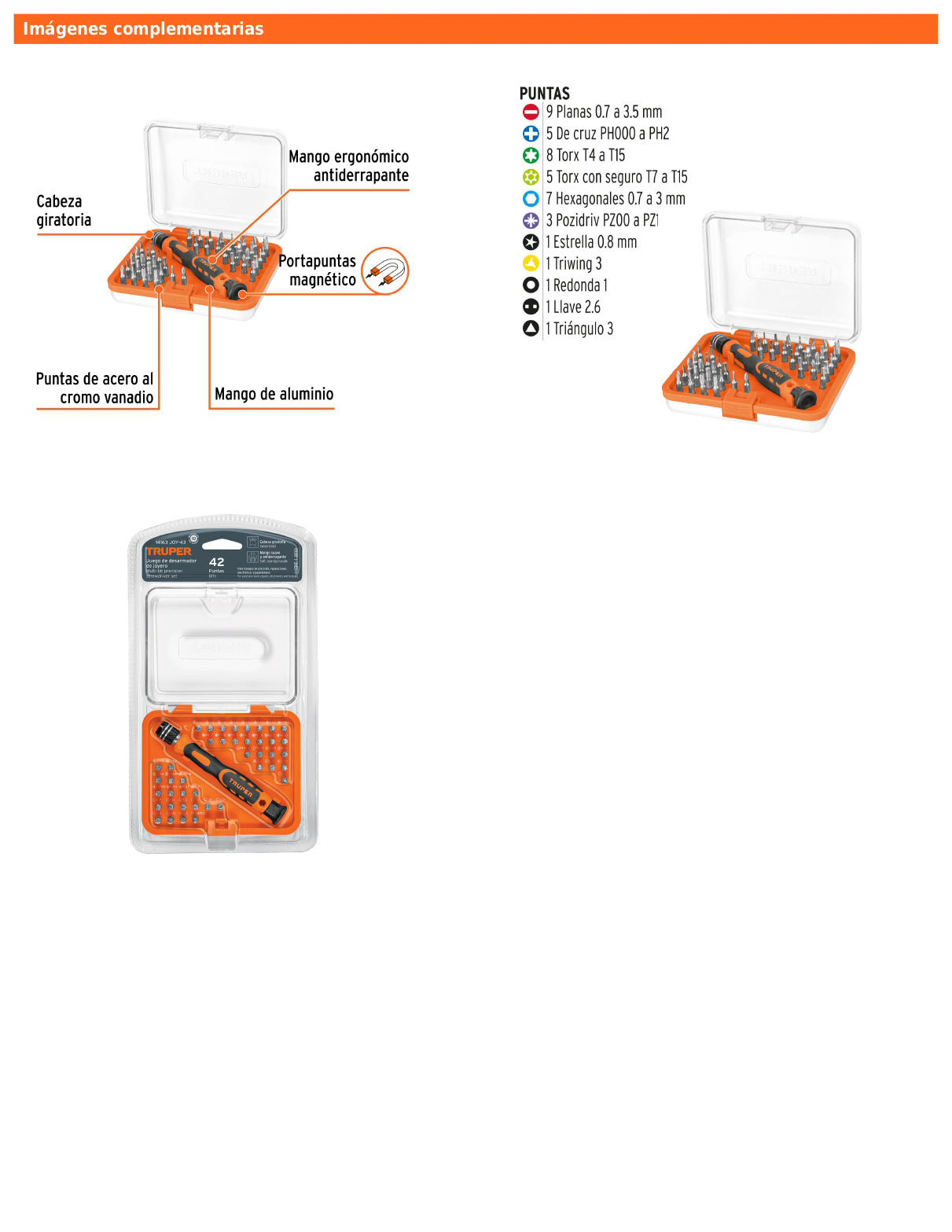 Desarmador de precisión diseñado para trabajos de electrónica y tareas detalladas, equipado con puntas fabricadas en acero al cromo vanadio que ofrecen mayor resistencia al desgaste. Incorpora portapuntas magnético, mango de aluminio con cabeza giratoria que facilita el control durante el uso y un estuche organizador que permite mantener todas las puntas ordenadas y protegidas.