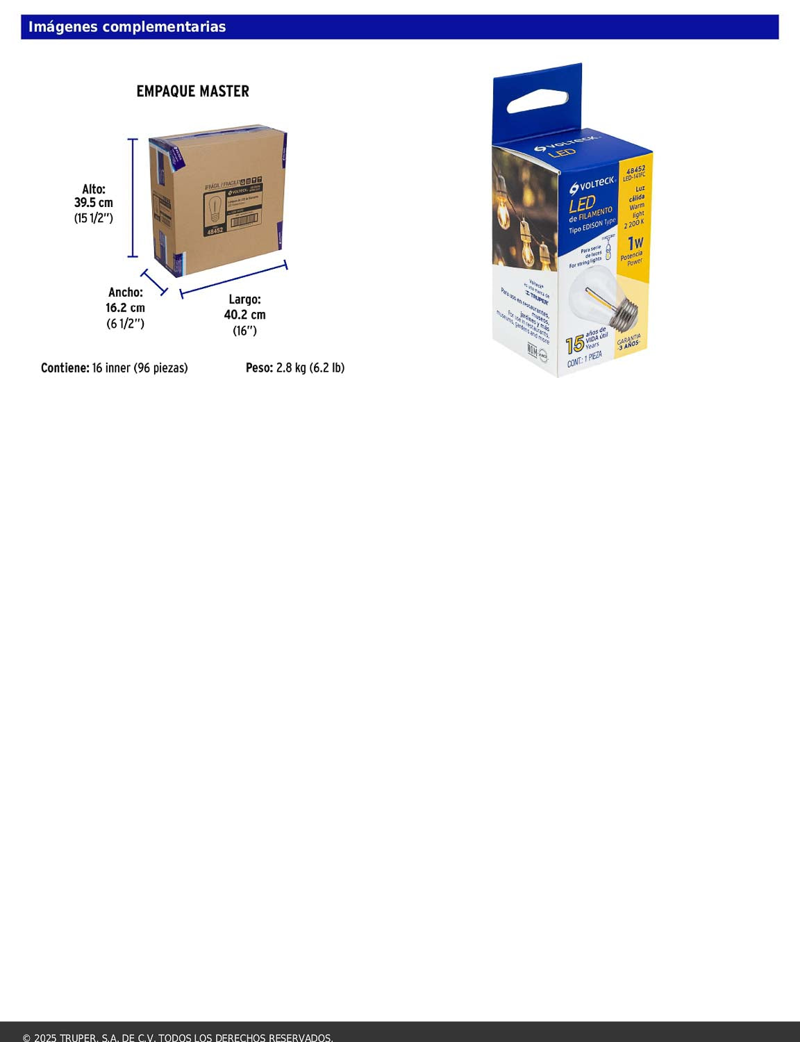 - Tiempo de vida 15 años (15,000 h).