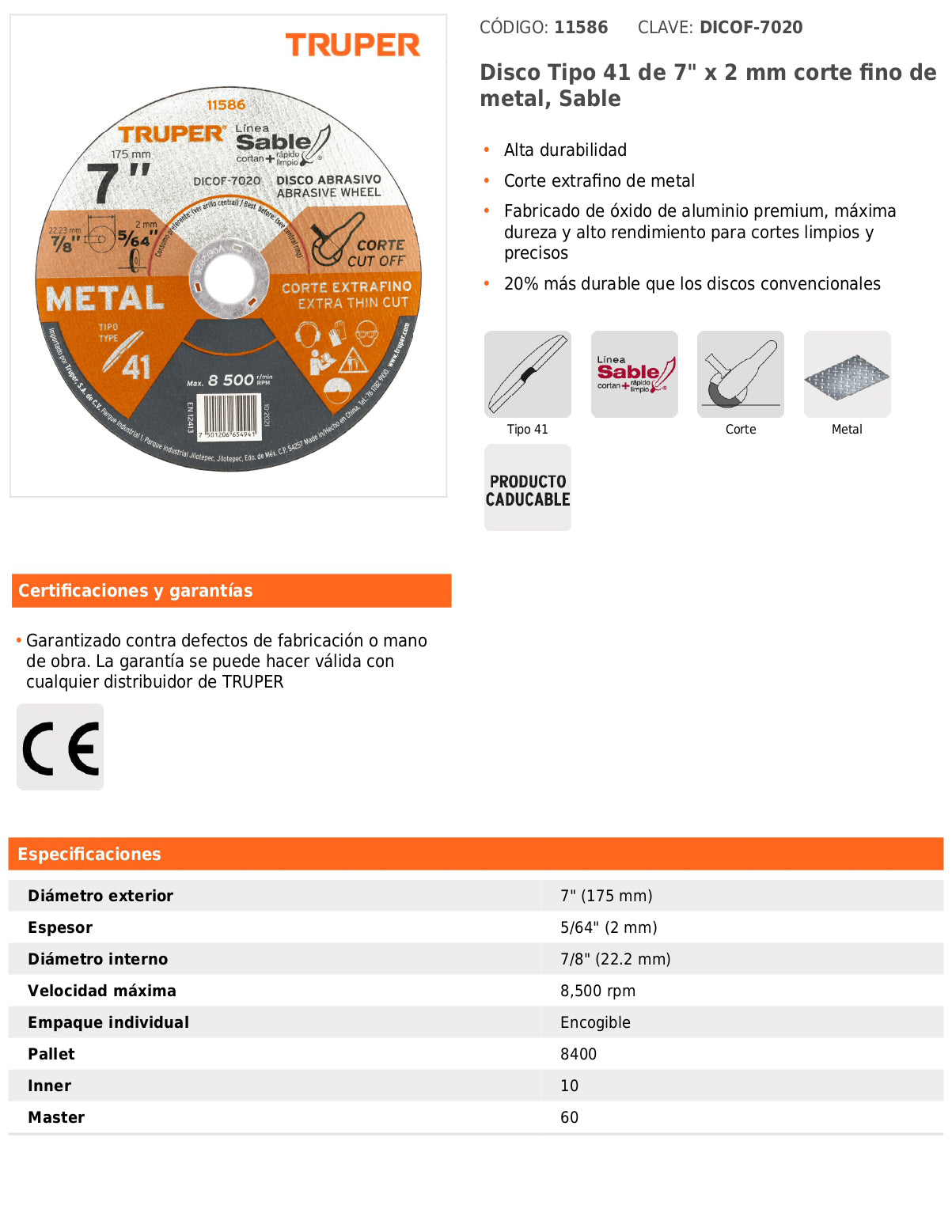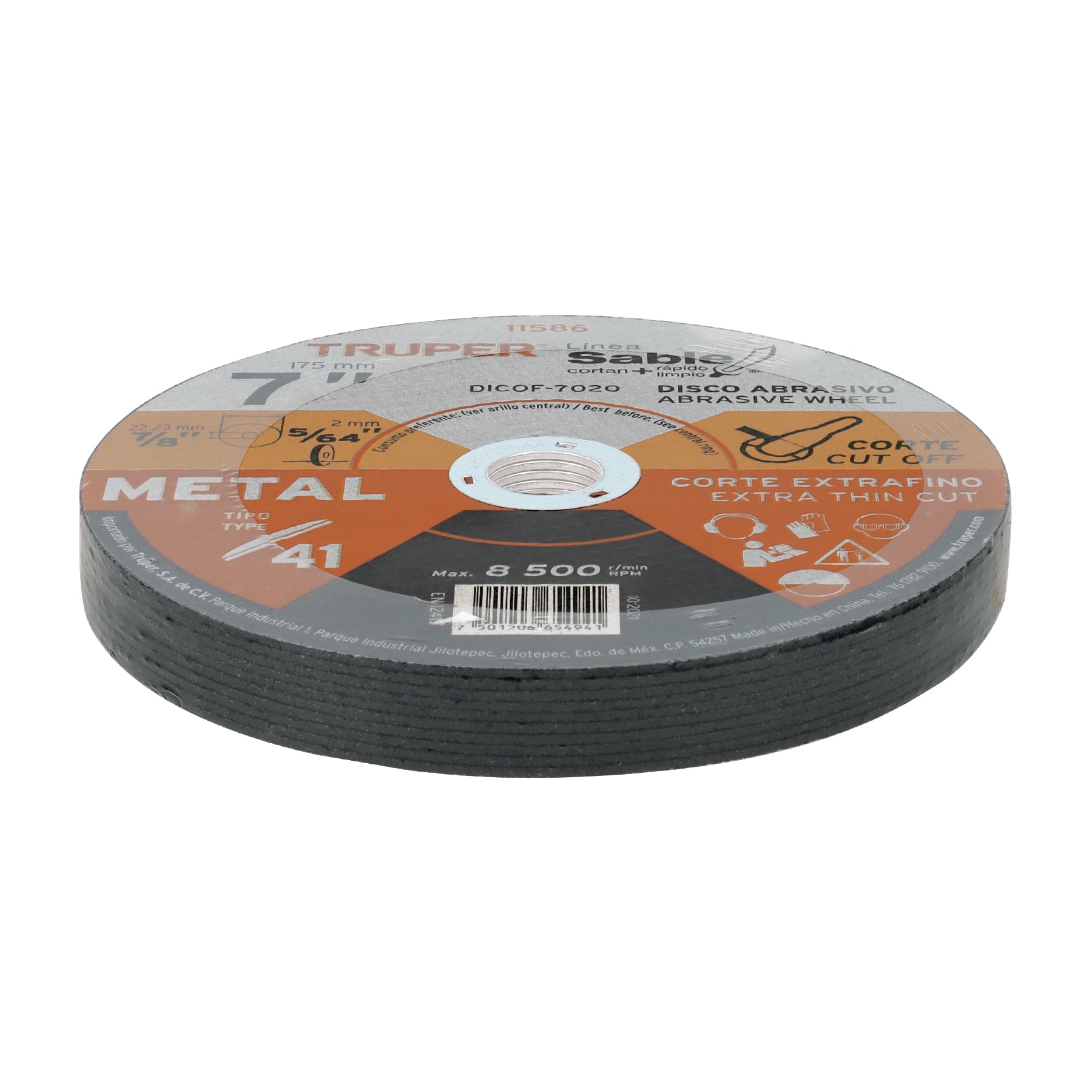 Disco abrasivo tipo 41 diseñado para corte fino de metal, fabricado con óxido de aluminio premium que ofrece máxima dureza y alto rendimiento para lograr cortes limpios y precisos. Su diseño extrafino permite un trabajo más controlado y eficiente, proporcionando mayor durabilidad frente a discos convencionales y un desempeño confiable en aplicaciones profesionales.