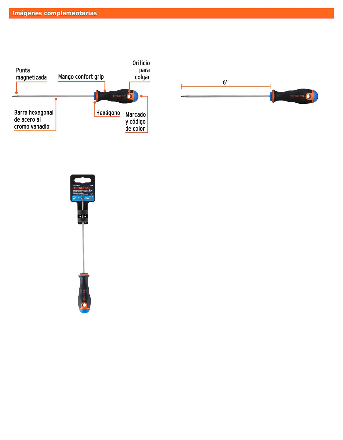 Desarmador de cruz diseñado para trabajos de ajuste y mantenimiento que requieren mayor alcance. Incorpora barra hexagonal de acero al cromo vanadio para mayor resistencia al desgaste y punta magnetizada que facilita el manejo del tornillo. Su mango Comfort Grip con orificio para colgar ofrece un agarre cómodo y seguro durante el uso.
