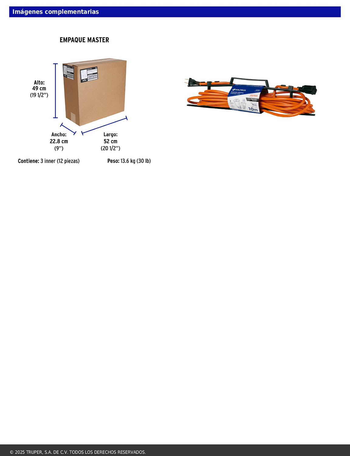 - Empaque individual porta extensión.
