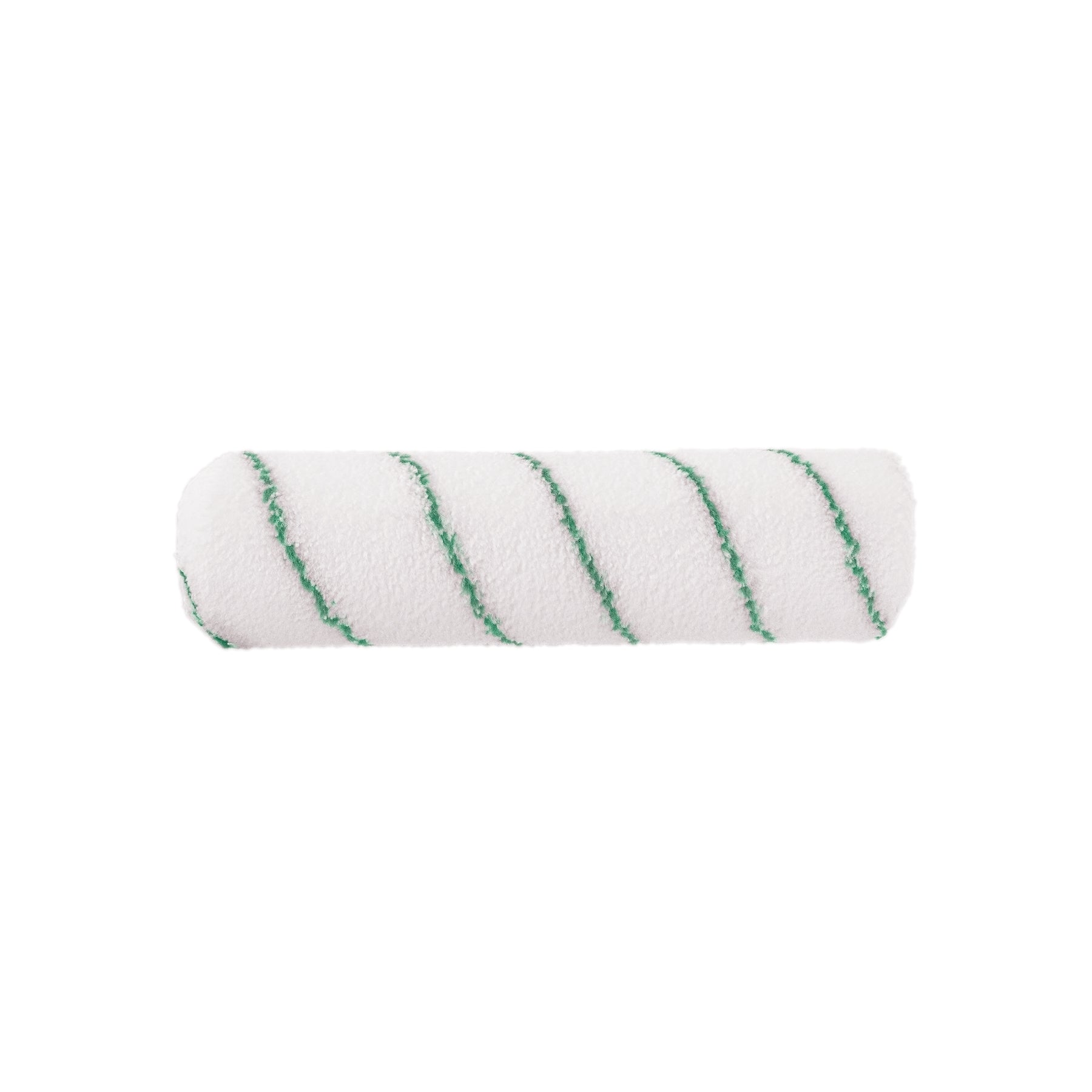 Felpa de microfibra en color blanco con líneas verdes, diseñada para acabados parejos sobre superficies lisas y poco rugosas. Su material de microfibra ofrece excelente absorción y distribución de pintura, logrando una cobertura uniforme con menor esfuerzo. Incorpora tubo de polipropileno resistente y es compatible con el modelo ROPI-910M.