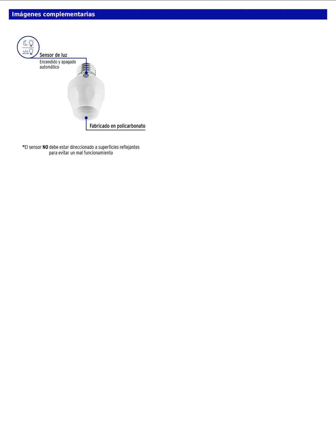 Portalámpara con encendido automático al anochecer y apagado al amanecer. Cuenta con cuerpo de PBT y casquillo de aluminio, y es compatible con sockets estándar E26/E27. Funciona con lámparas LED, ahorradoras, incandescentes y halógenas.