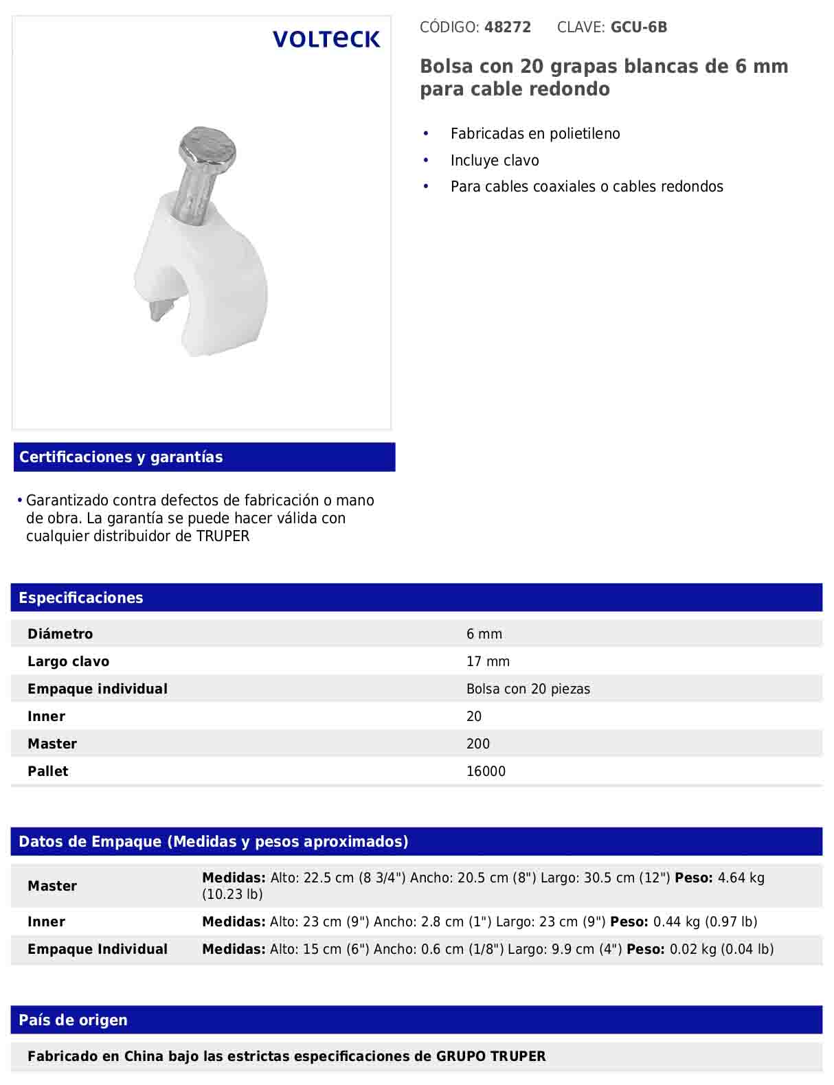 - País de origen: Fabricado en China bajo las estrictas especificaciones de GRUPO TRUPER