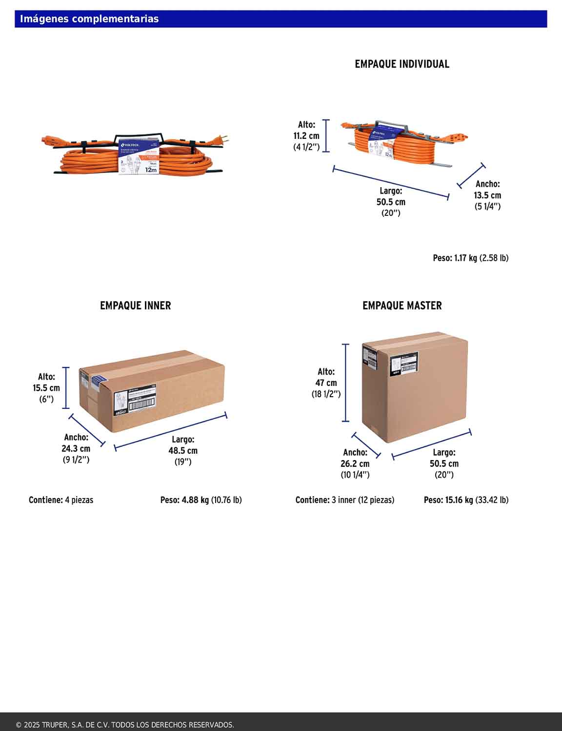 Extensión eléctrica diseñada para uso rudo en interiores, elaborada con cubierta de PVC resistente a la propagación de la flama. Cuenta con tres contactos polarizados y un diseño que permite conectar clavijas aterrizadas. Cumple con la norma NOM-003-SCFI.