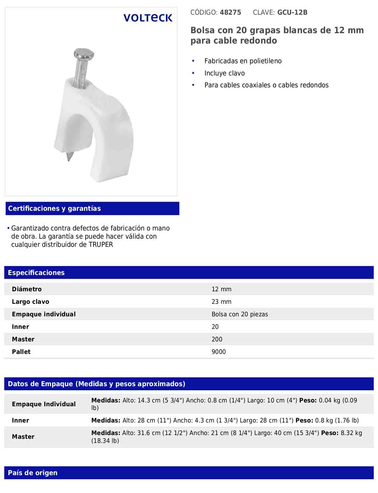 - País de origen: Fabricado en China bajo las estrictas especificaciones de GRUPO TRUPER
