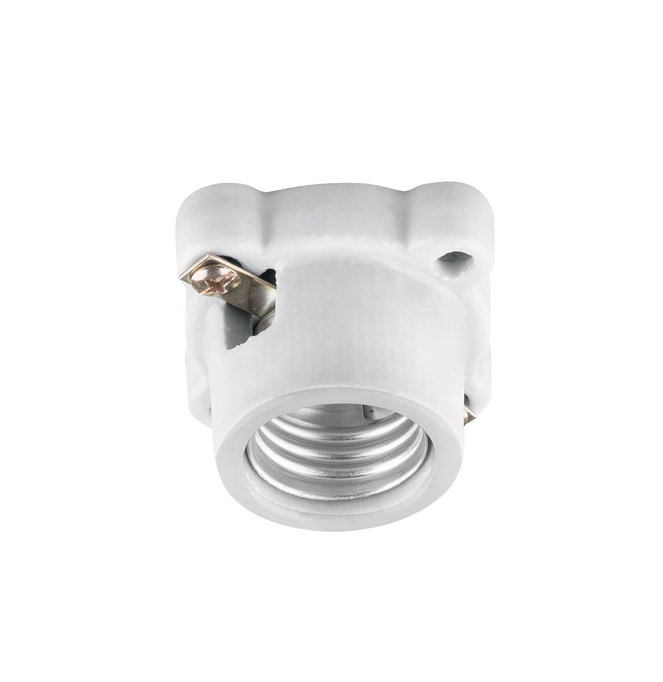 Portalámpara de porcelana cuadrado con casquillo de aluminio y base atornillable