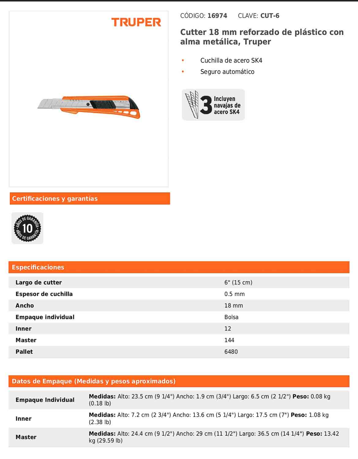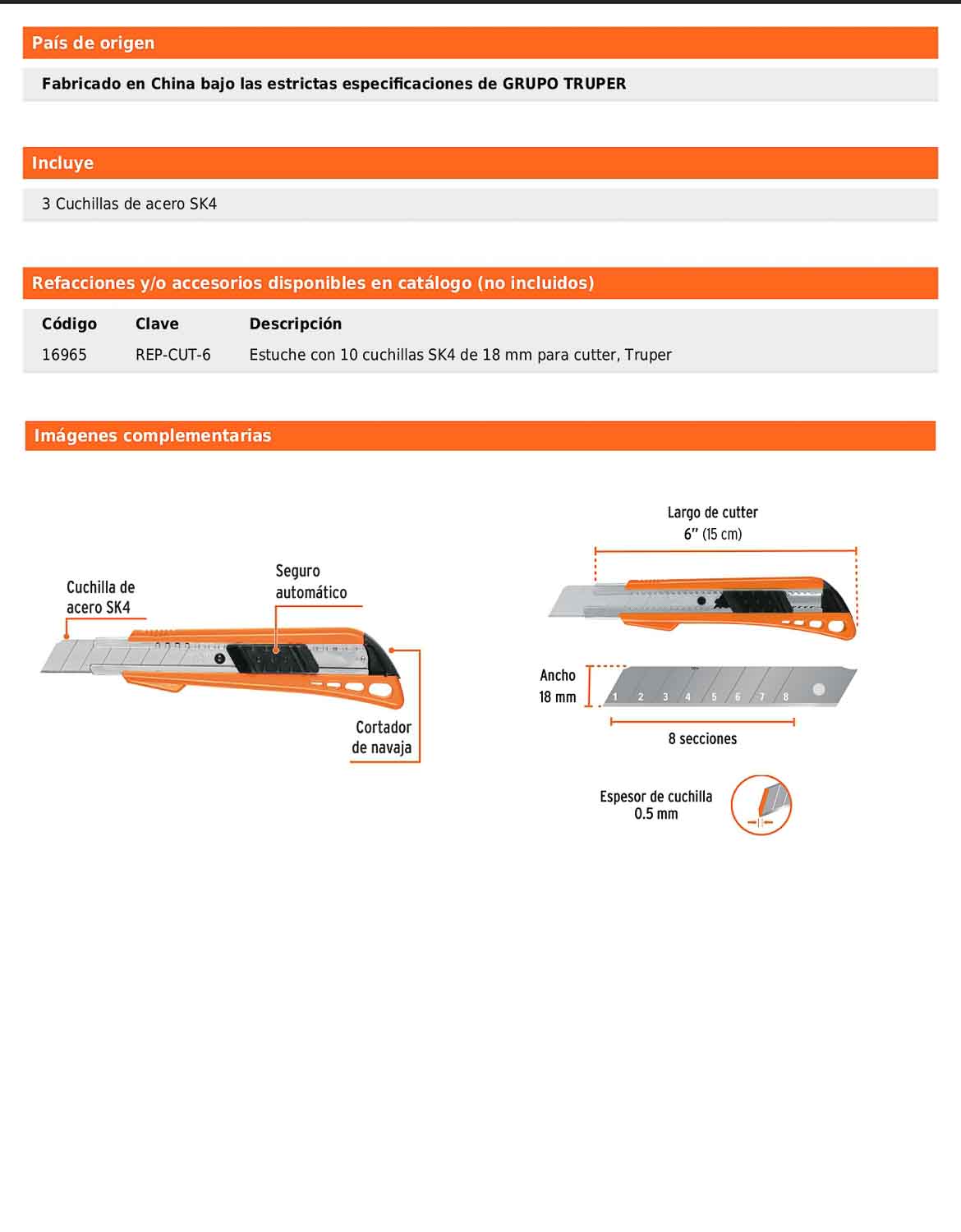 - Largo de cutter: 15 cm.