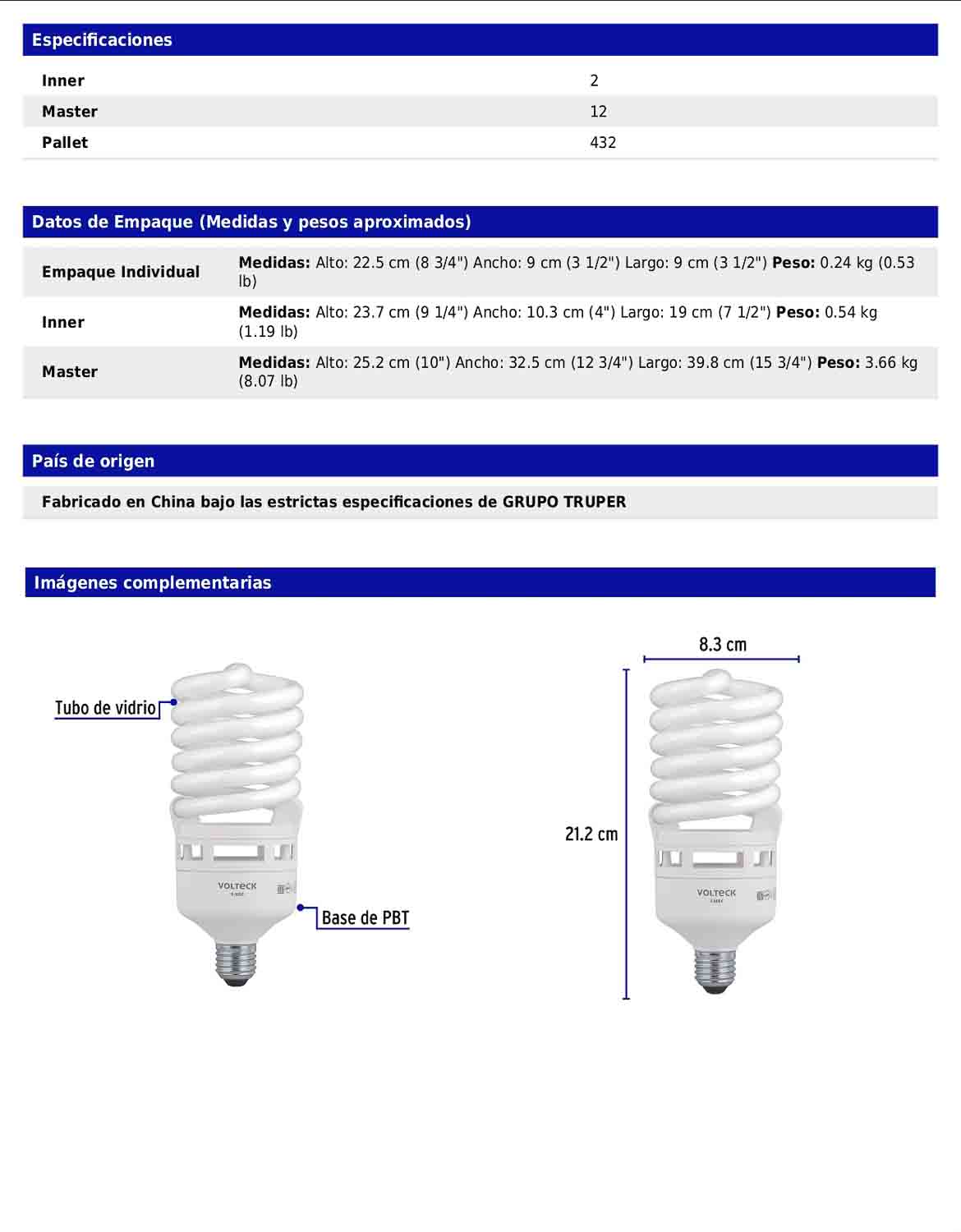 Lámpara fluorescente compacta tipo espiral T4 de 65 W de alta potencia, diseñada para ofrecer un flujo luminoso equivalente al de un foco tradicional de 235 W, brindando encendido instantáneo y un ahorro energético del 72%. Fabricada con tubo de vidrio y base de PBT, proporciona luz de día de 6500 K y resulta ideal para espacios amplios que requieren gran intensidad luminosa.