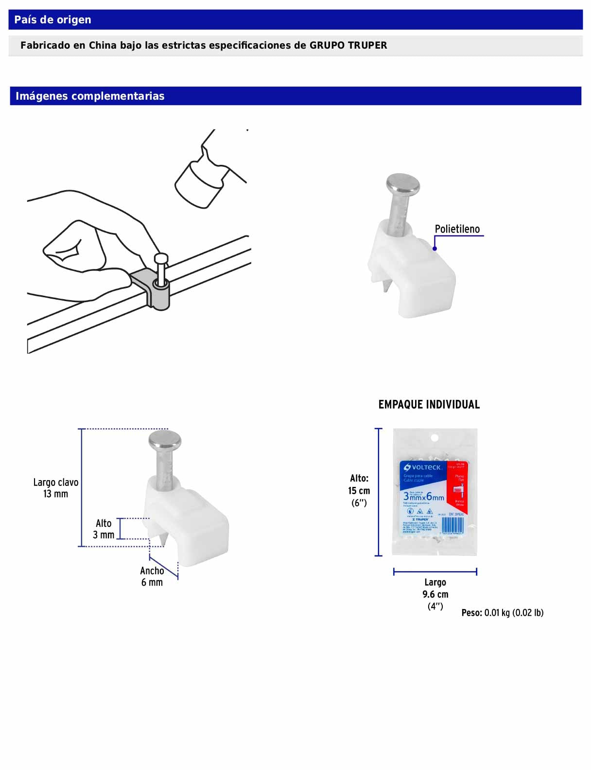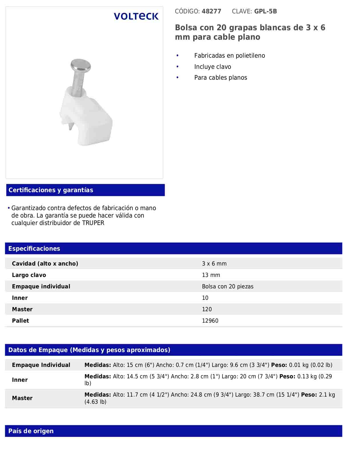 - País de origen: Fabricado en China bajo las estrictas especificaciones de GRUPO TRUPER