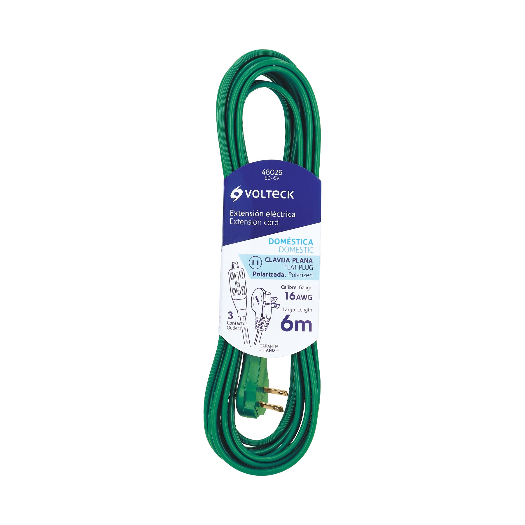 Extensión eléctrica doméstica de 6 m con clavija plana verde