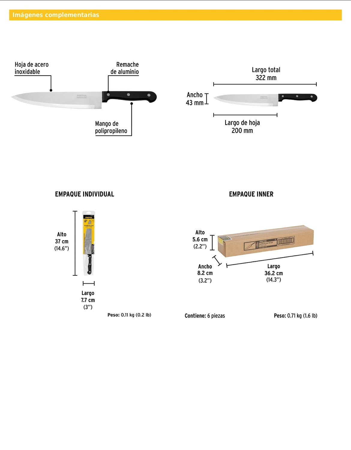 Cuchillo de chef de 8 pulgadas con mango de polipropileno