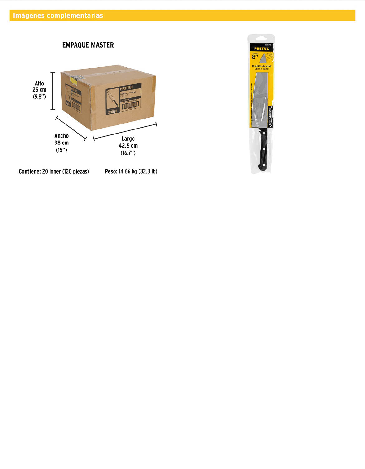 Cuchillo de chef diseñado para tareas de corte en cocina, ideal para picar, rebanar y preparar distintos tipos de alimentos. Su mayor longitud de hoja ofrece un alcance amplio y un control estable, adecuado para trabajos de corte exigentes en el uso diario.