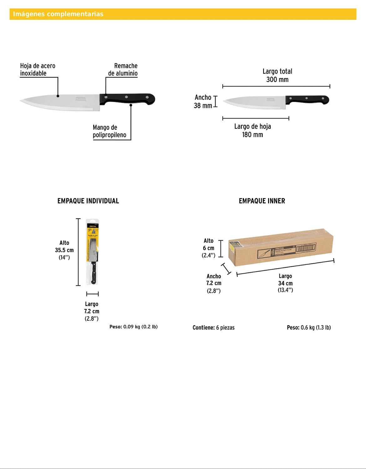 Cuchillo de chef de 7 pulgadas con mango de polipropileno