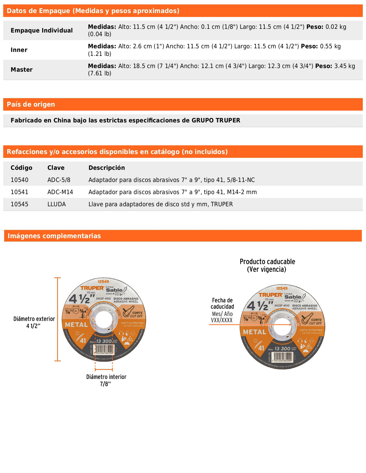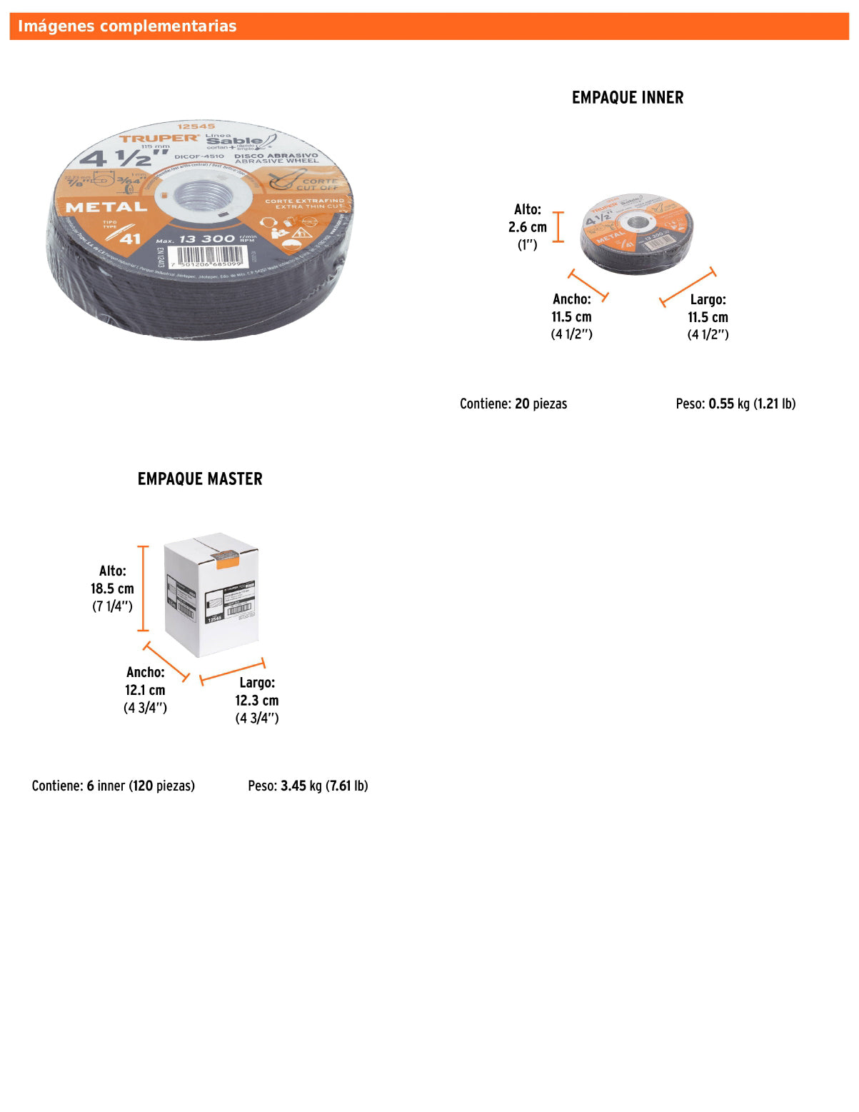 - Diámetro exterior: 4 1/2 in (115 mm).