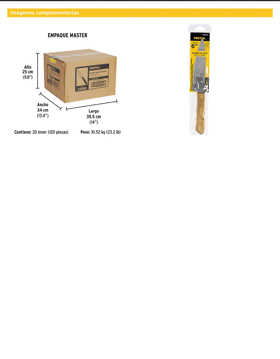Cuchillo de chef diseñado para tareas de corte en cocina, ideal para picar, rebanar y preparar distintos tipos de alimentos. Su longitud de hoja proporciona mayor control y versatilidad, manteniendo un manejo cómodo para uso cotidiano.