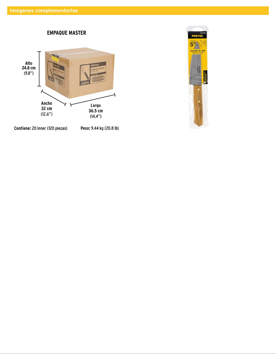 Cuchillo de chef de 5 pulgadas con mango de madera