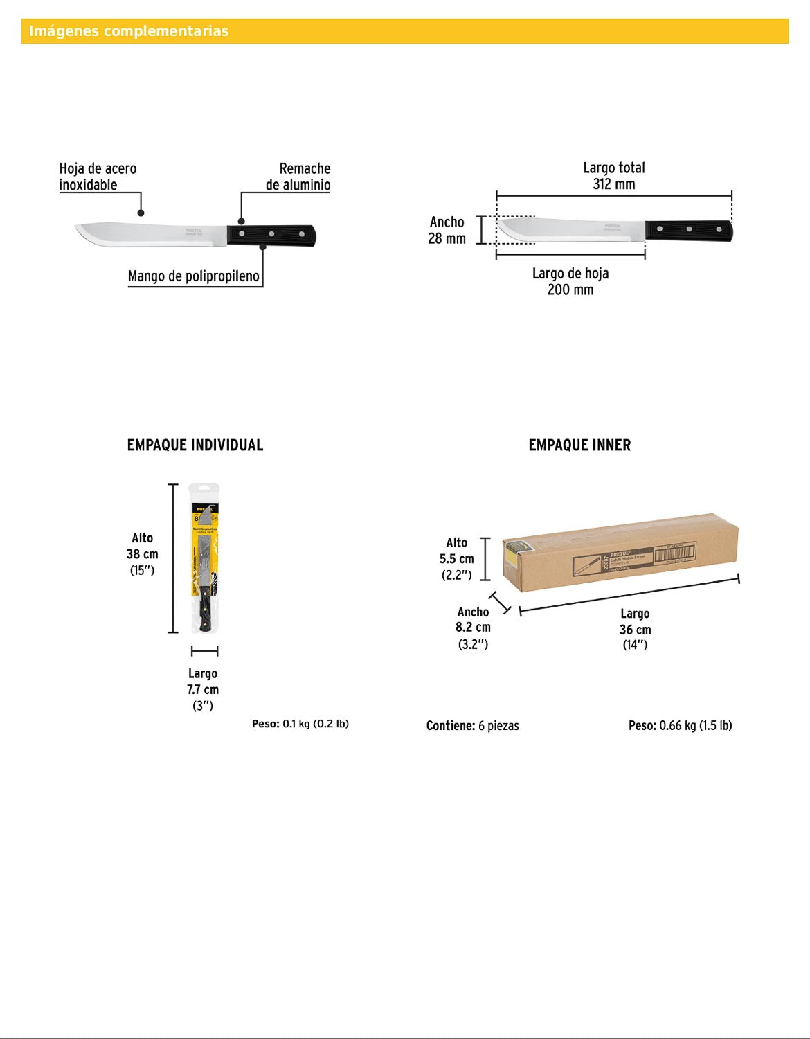 Cuchillo cebollero de 8 pulgadas con mango de polipropileno