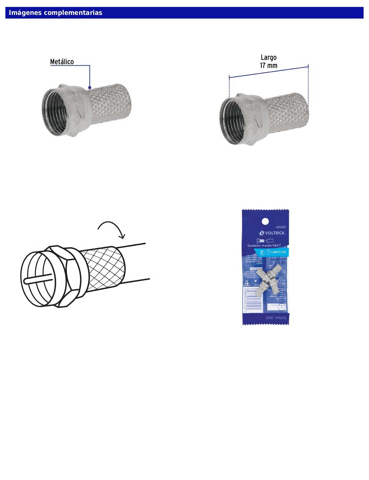 Este set incluye 4 conectores coaxiales metálicos diseñados para cable RG 6, ideales para instalaciones de antena, televisión satelital o cable. Su acabado niquelado brinda mayor resistencia y una conexión firme mediante sistema de enroscar, facilitando un montaje práctico y confiable.