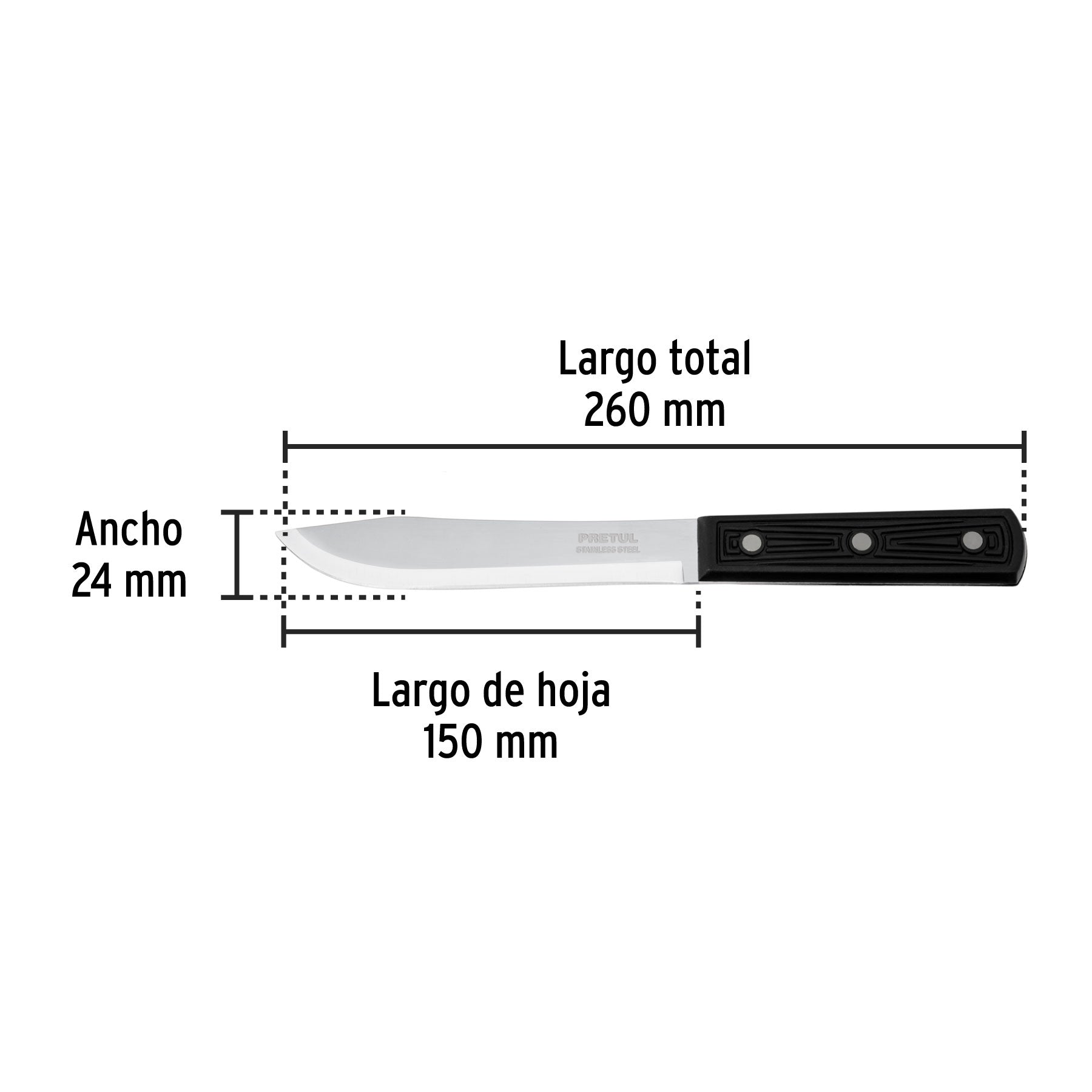 - Dimensiones (largo x ancho): 260 x 24 mm.