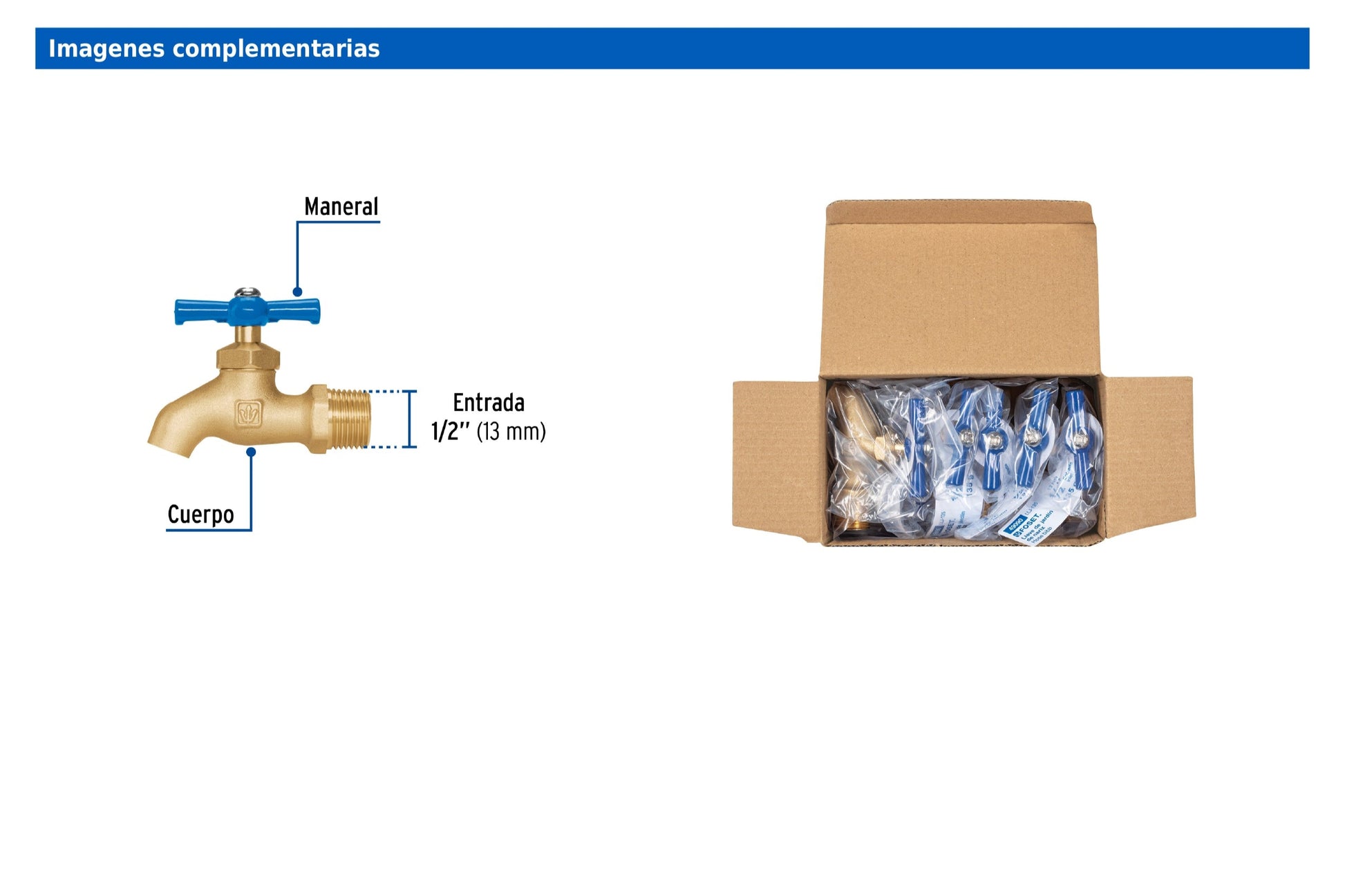 Fabricada en latón para máxima duración, con maneral metálico y cierre de compresión. Diseñada para jardín y tomas de agua.